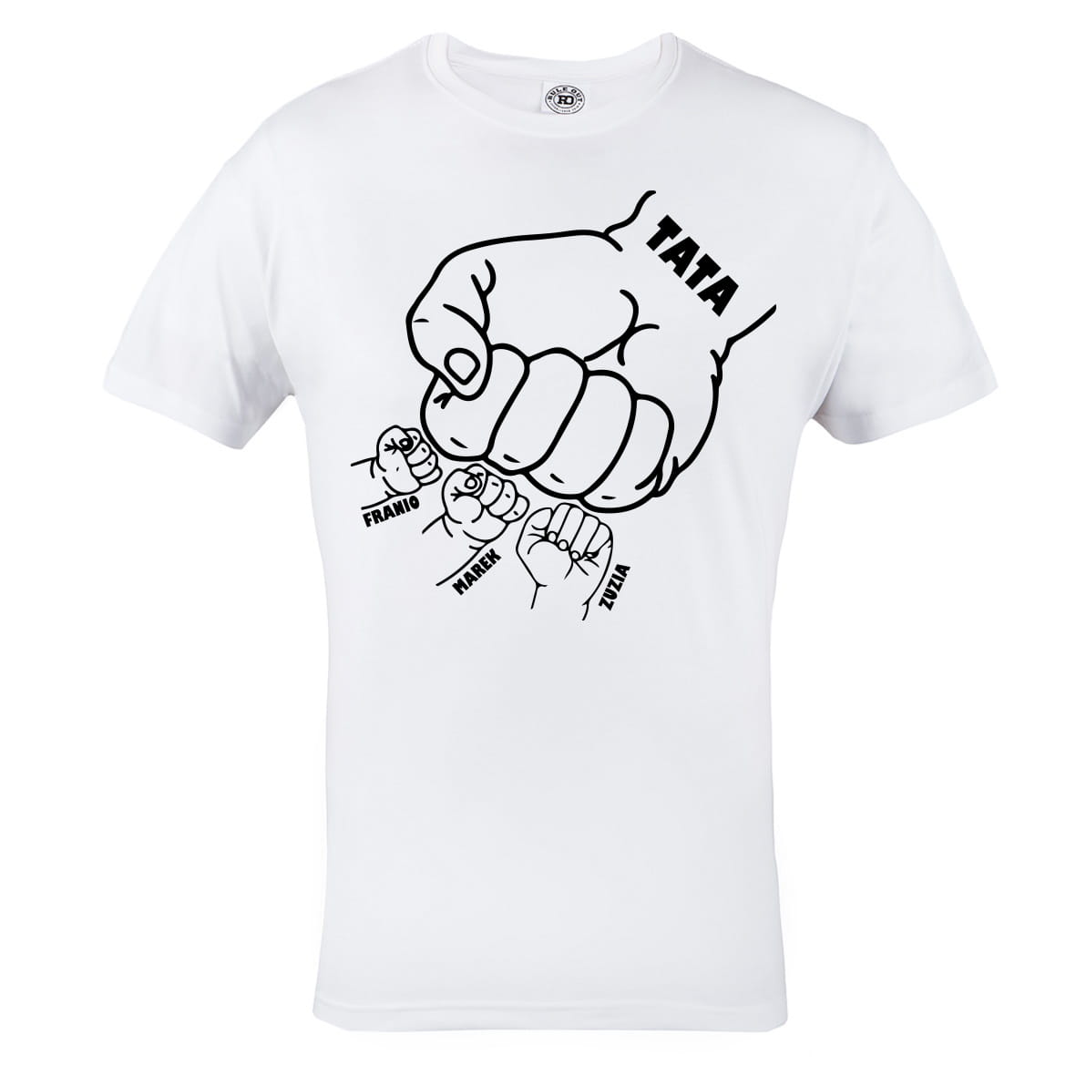 - Na koszulce zmieszczą się maksymalnie 4 pięści dzieciaków + pięść Taty, dodatkowo jest możliwa też pięść Mamy