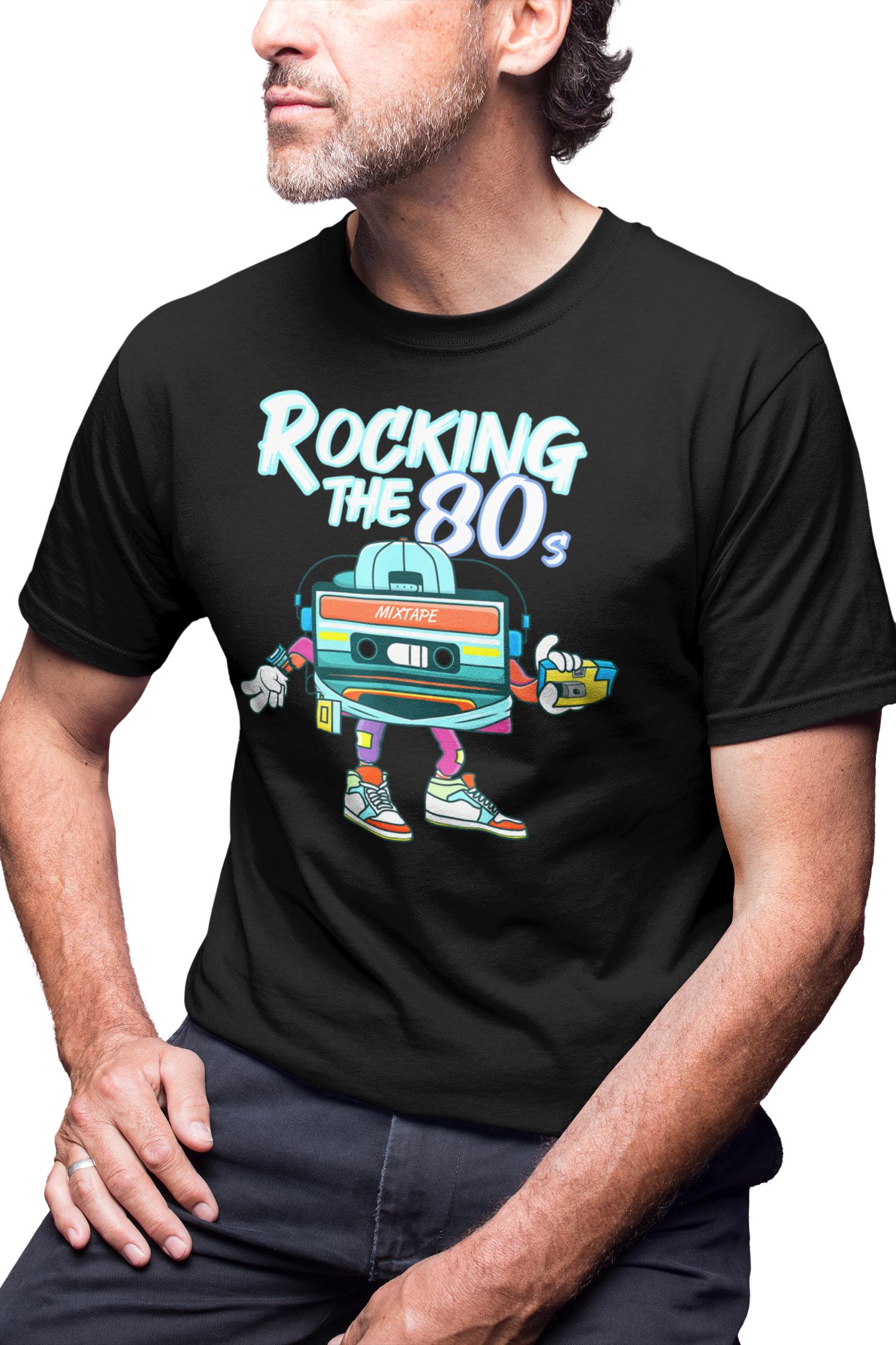 KOSZULKA MĘSKA RETRO VINTAGE LATA 80. OLD SCHOOL ROCKING THE 80'S MIXTAPE