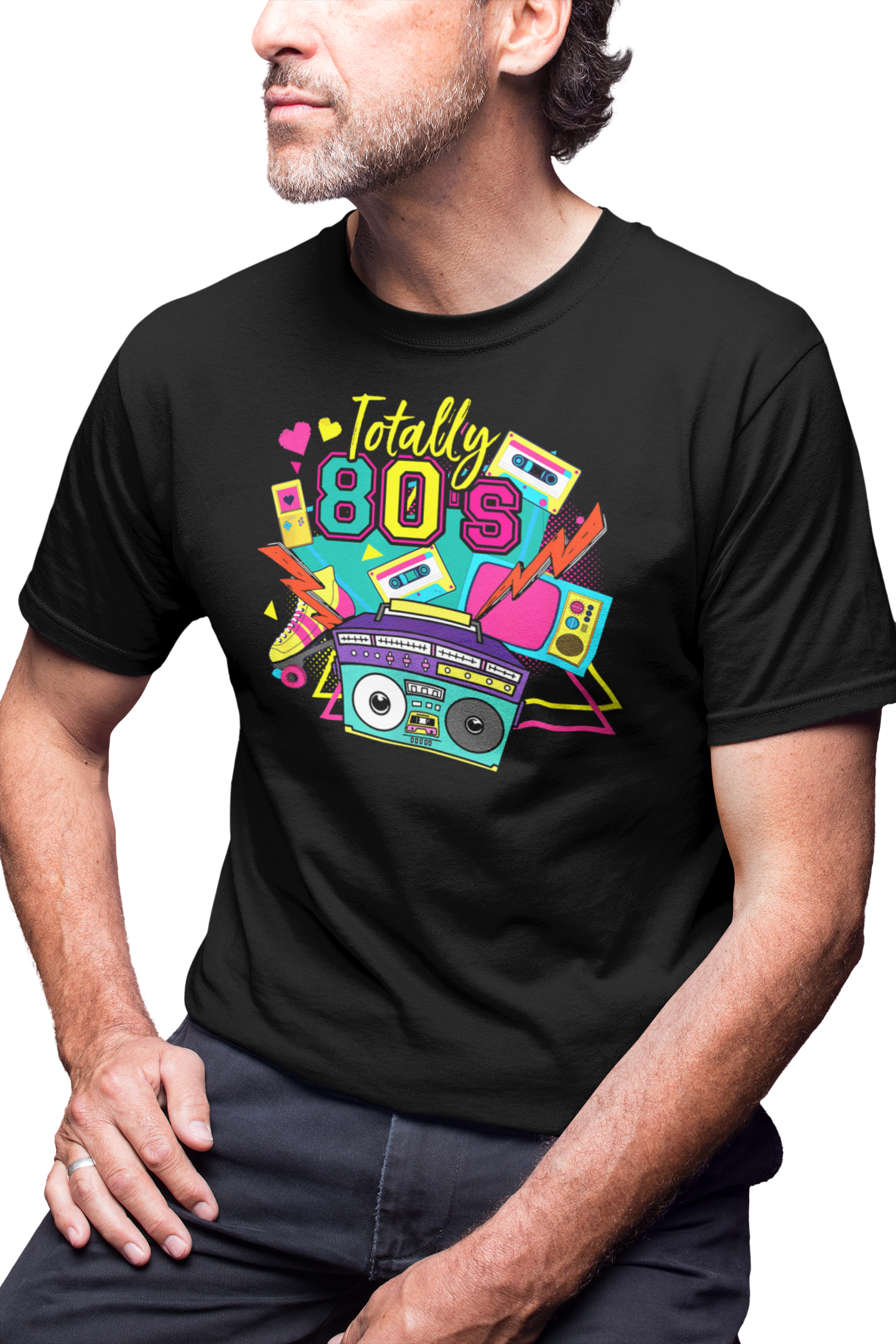 KOSZULKA MĘSKA RETRO VINTAGE LATA 80. OLD SCHOOL TOTALLY 80'S BOOMBOX KASETY
