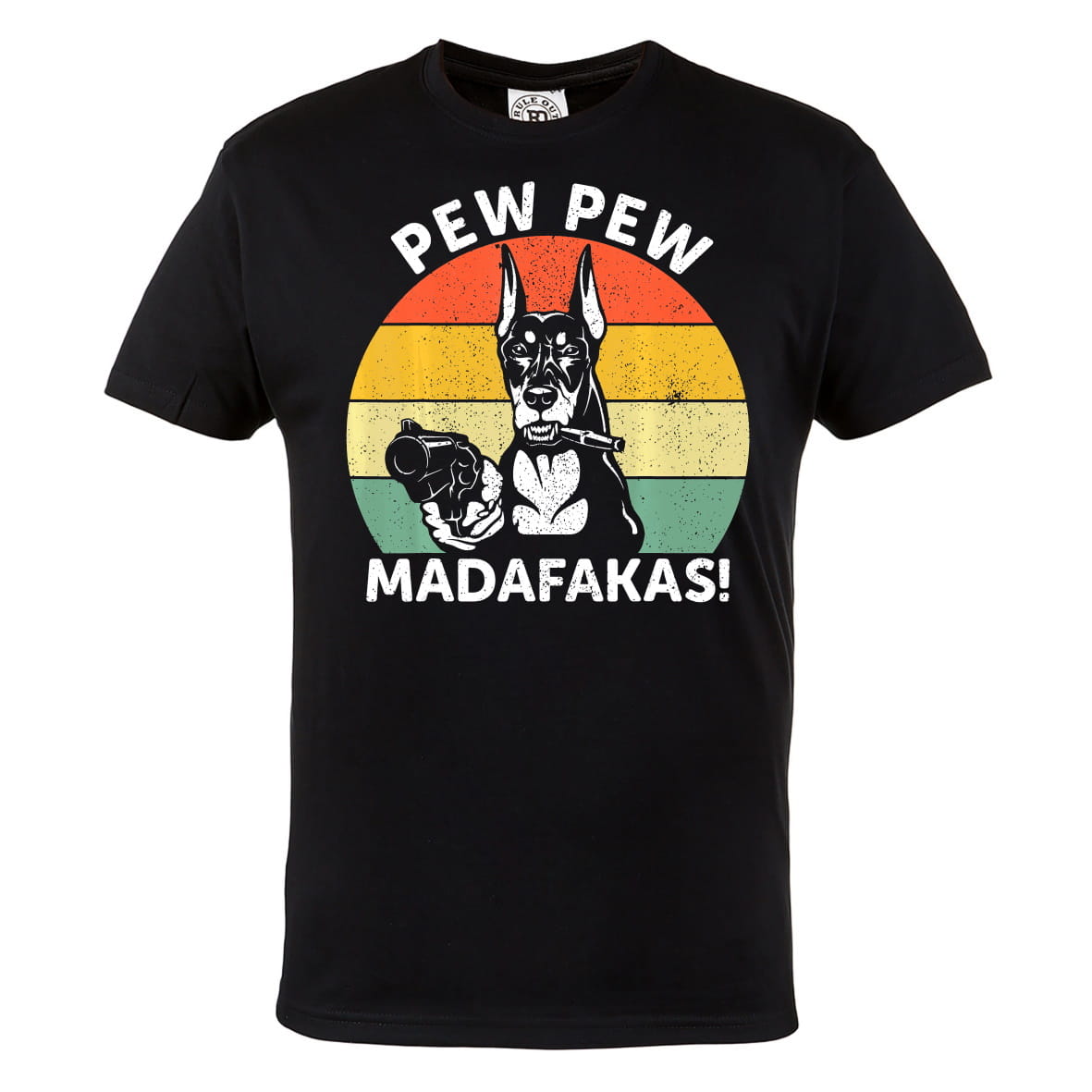 KOSZULKA MĘSKA Z PSEM DOBERMAN PEW PEW MADAFAKAS