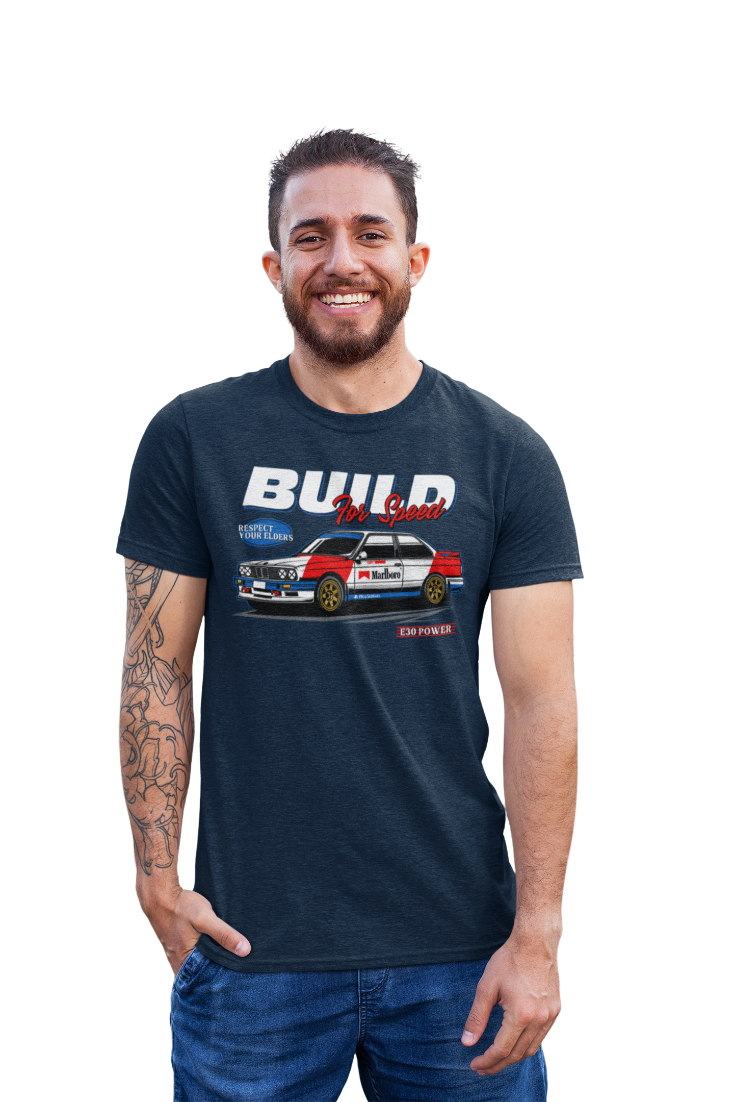 KOSZULKA MOTO MOTORYZACYJNA SAMOCHÓD BMW E30 POWER BUILD FOR SPEED