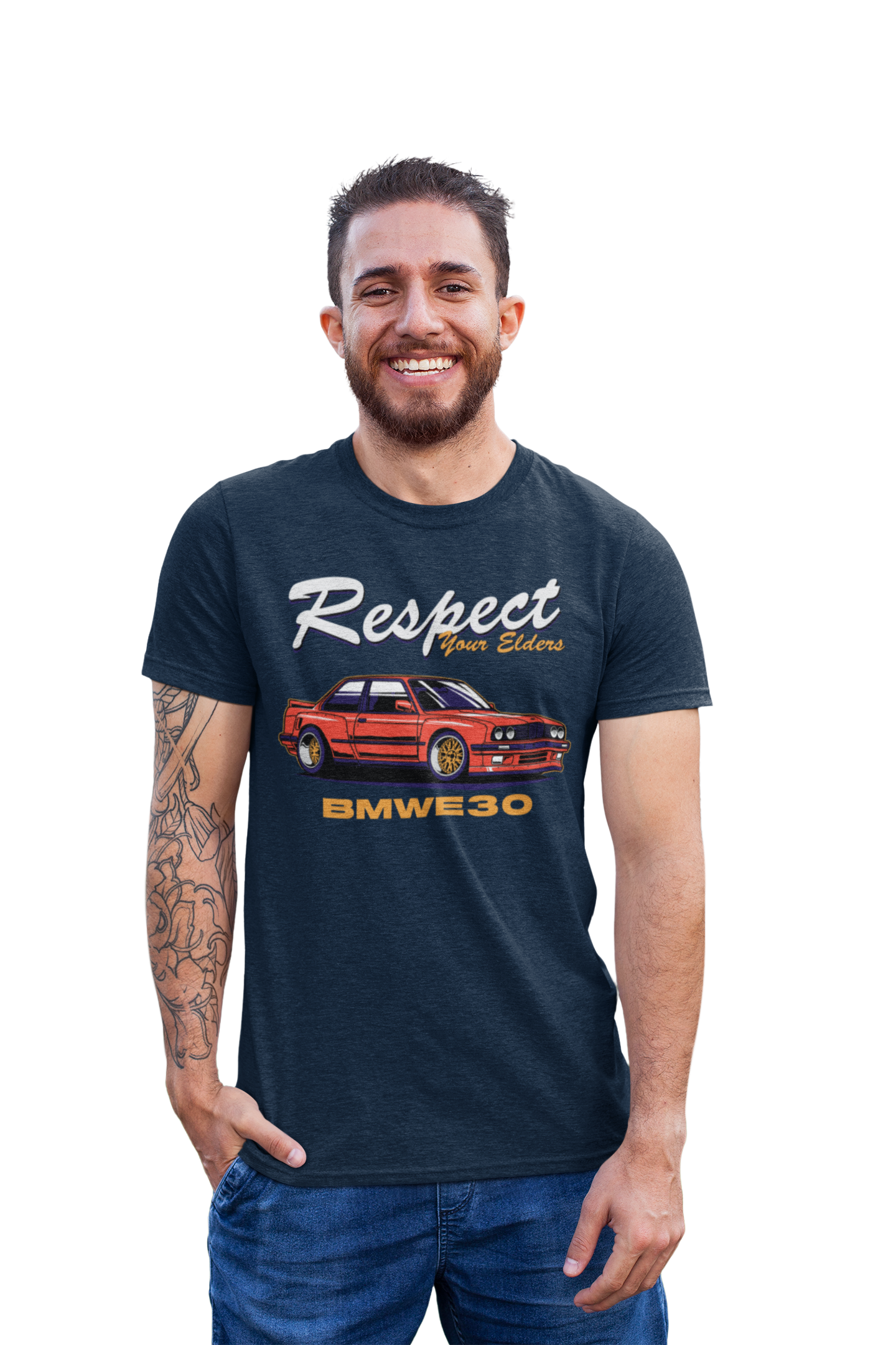 KOSZULKA MOTO MOTORYZACYJNA SAMOCHÓD CZERWONE BMW E30 RESPECT YOUR ELDERS