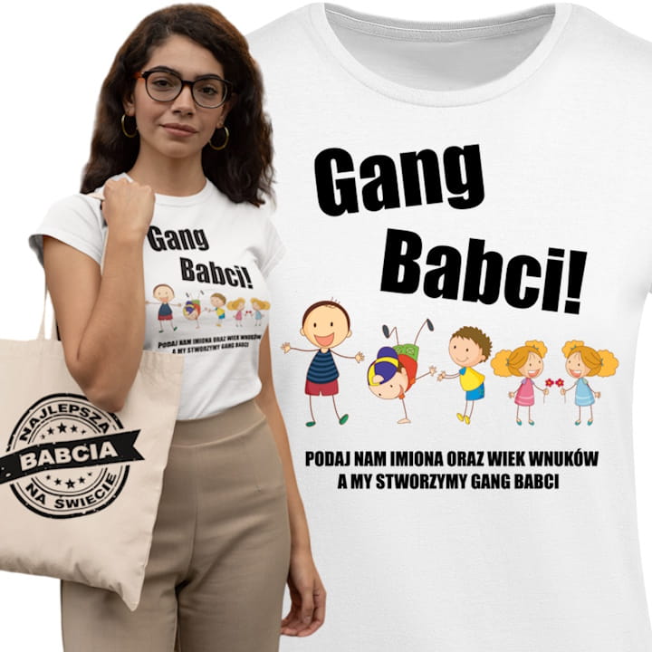 KOSZULKA PERSONALIZOWANA PREZENT NA DZIEŃ BABCI GANG BABCI TORBA GRATIS