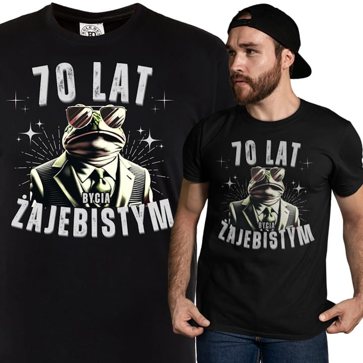 Ta wyjątkowa męska koszulka to idealny wybór dla każdego, kto wkracza w świat siedemdziesiątki z dumą, humorem i klasą! Wykonana z wysokiej jakości materiałów, z trwałym nadrukiem "70 lat bycia żajebistym", nie tylko zachwyca stylowym wyglądem, ale także zapewnia niezrównany komfort na co dzień. Dopracowany design sprawia, że świetnie sprawdzi się zarówno na urodzinowej imprezie, jak i podczas luźnych spotkań z przyjaciółmi.