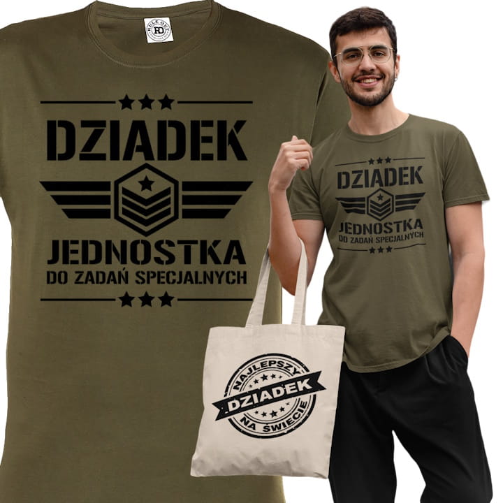 KOSZULKA PREZENT NA DZIEŃ DZIADKA DZIADEK JEDNOSTKA DO ZADAŃ SPECJALNYCH TORBA GRATIS