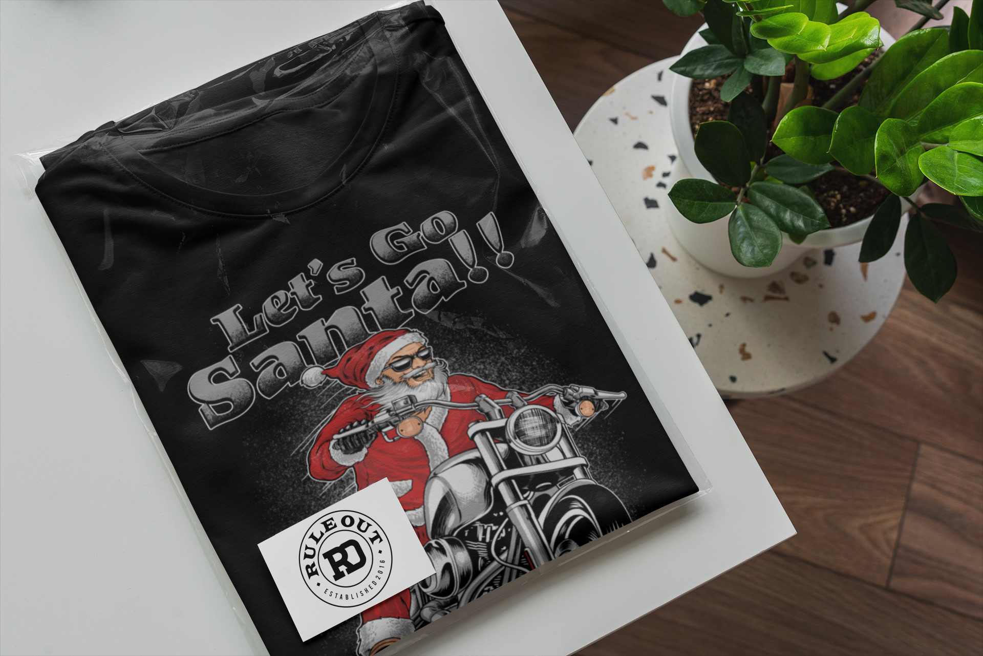 KOSZULKA ŚWIĄTECZNA MĘSKA ŚWIĘTY MIKOŁAJ NA MOTORZE LET'S GO SANTA