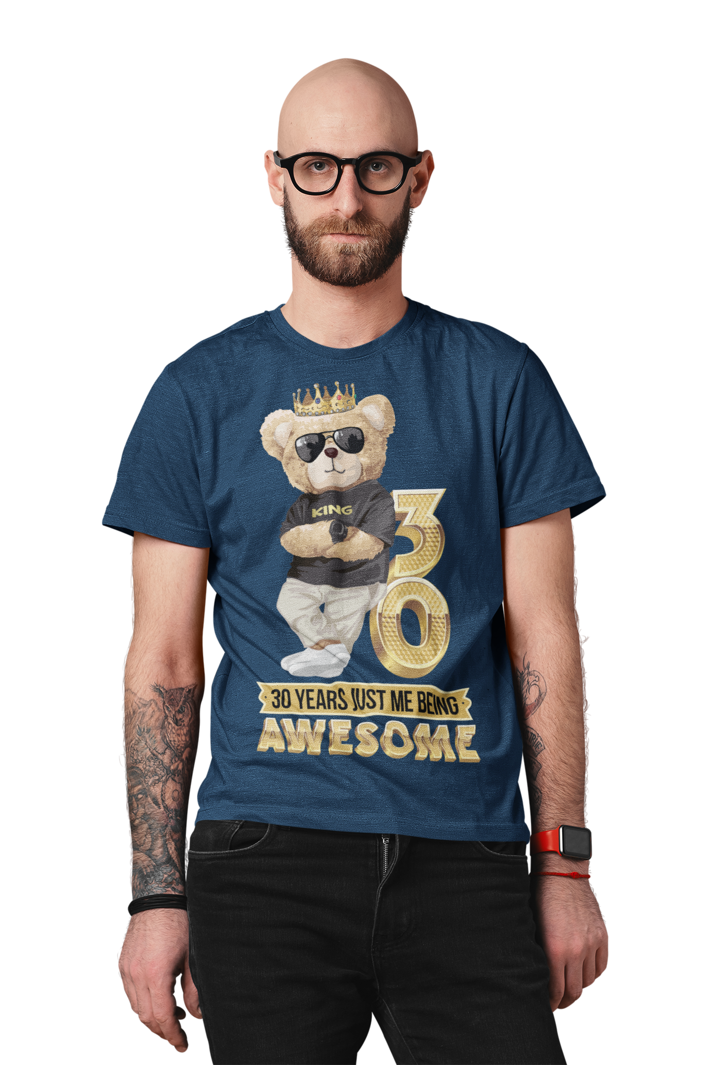 KOSZULKA URODZINOWA PREZENT NA 30 URODZINY STYLOWY MIŚ KING JUST ME BEING AWESOME