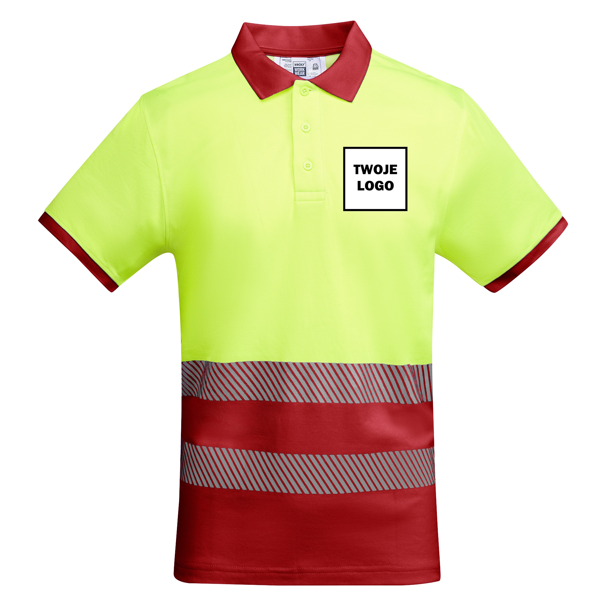 Koszulka Polo robocza odblaskowa HIGH VIS 170 g z nadrukiem DTF Żółty/Czerwony Fluorescencyjny