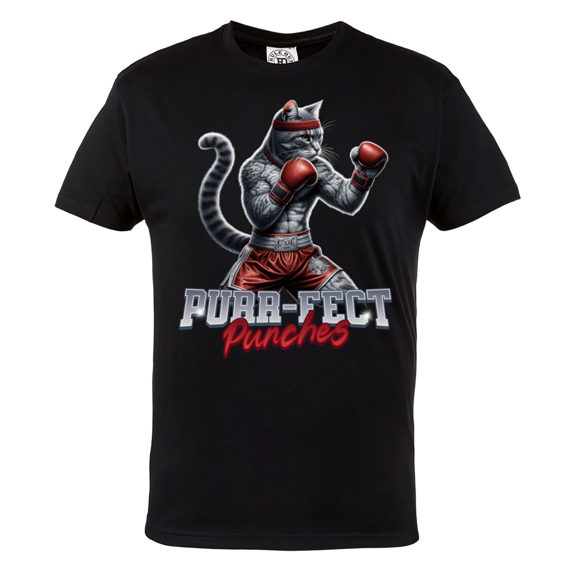 Koszulka Purr-fect Punches – śmieszny kot bokser, boks, MMA, funny cat boxing t-shirt