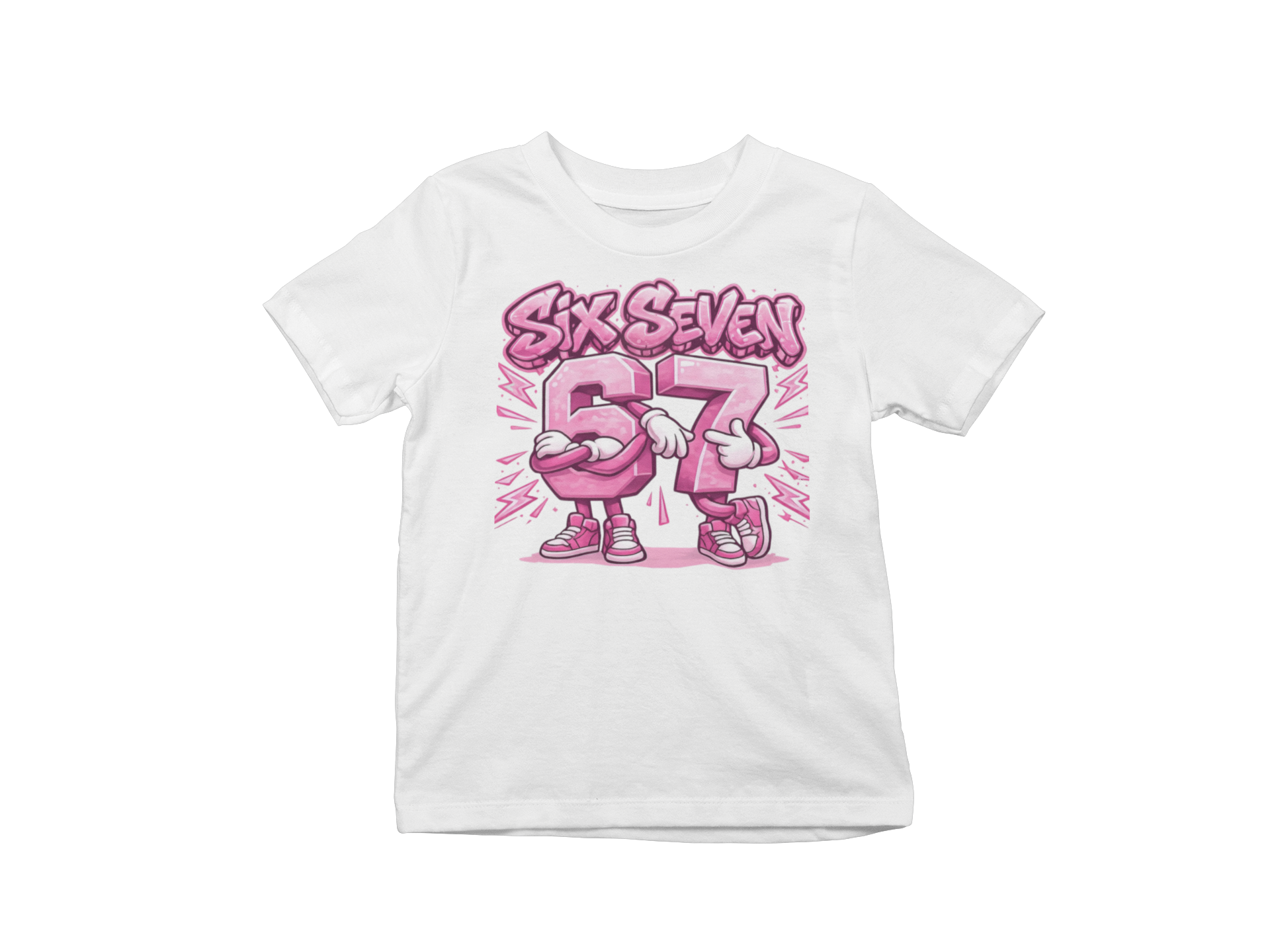 Koszulka dziecięca z nadrukiem Six Seven 67 to stylowy t-shirt dla dzieci, które lubią modne ubrania z wyrazistą grafiką. Kolorowy nadruk z liczbą 67 w kreskówkowym stylu nadaje koszulce dynamiczny wygląd i sprawia, że świetnie wpisuje się w nowoczesny, streetwearowy klimat. To doskonała propozycja dla dzieci, które chcą nosić wygodne koszulki z ciekawym i oryginalnym wzorem.
