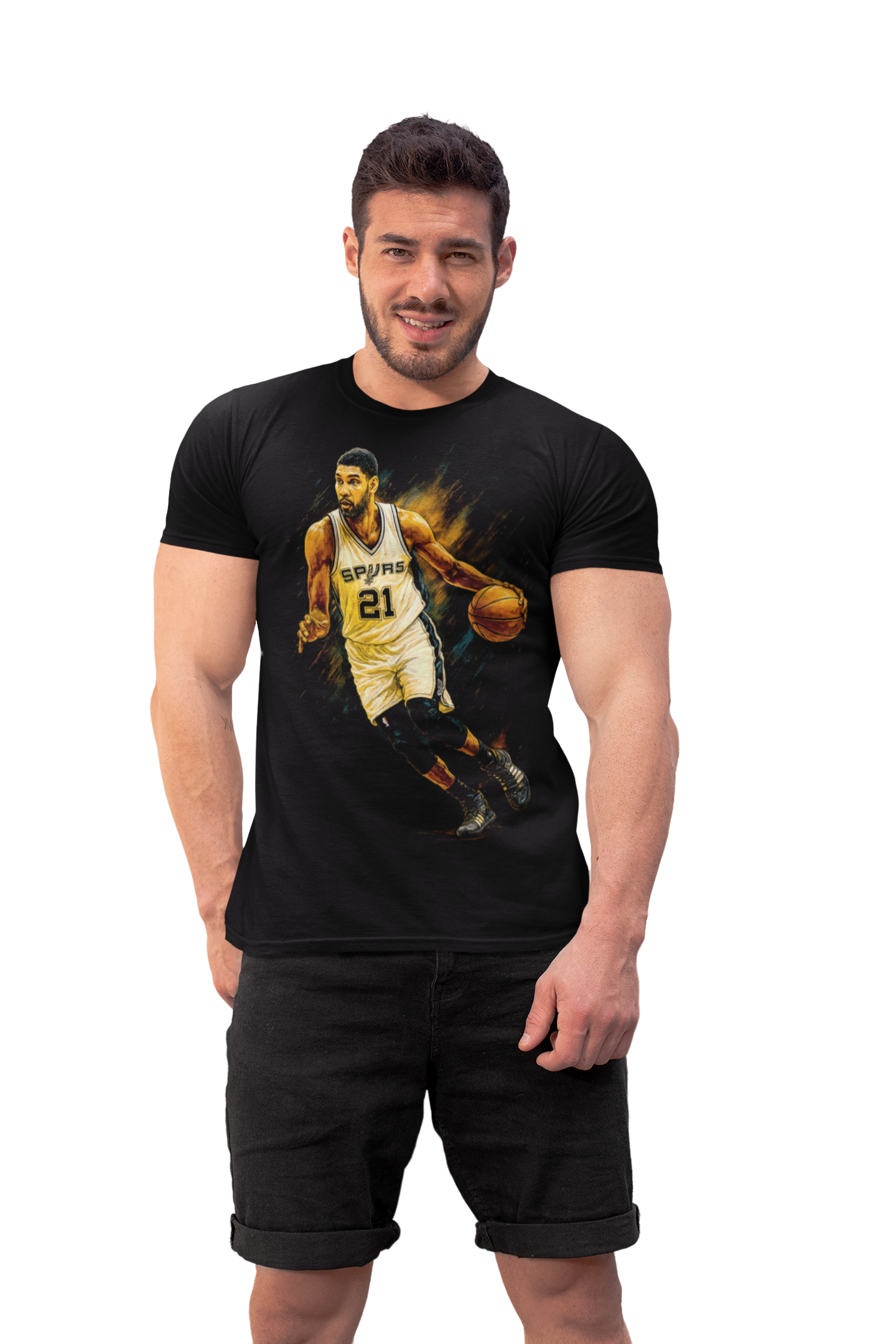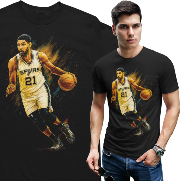 Koszykarska koszulka NBA inspirowana San Antonio Spurs to idealny wybór dla fanów klasycznej koszykówki i legend parkietu. Dynamiczna grafika przedstawiająca zawodnika z numerem 21 oddaje ducha zespołu Spurs – precyzję, siłę i ponadczasowy styl gry.