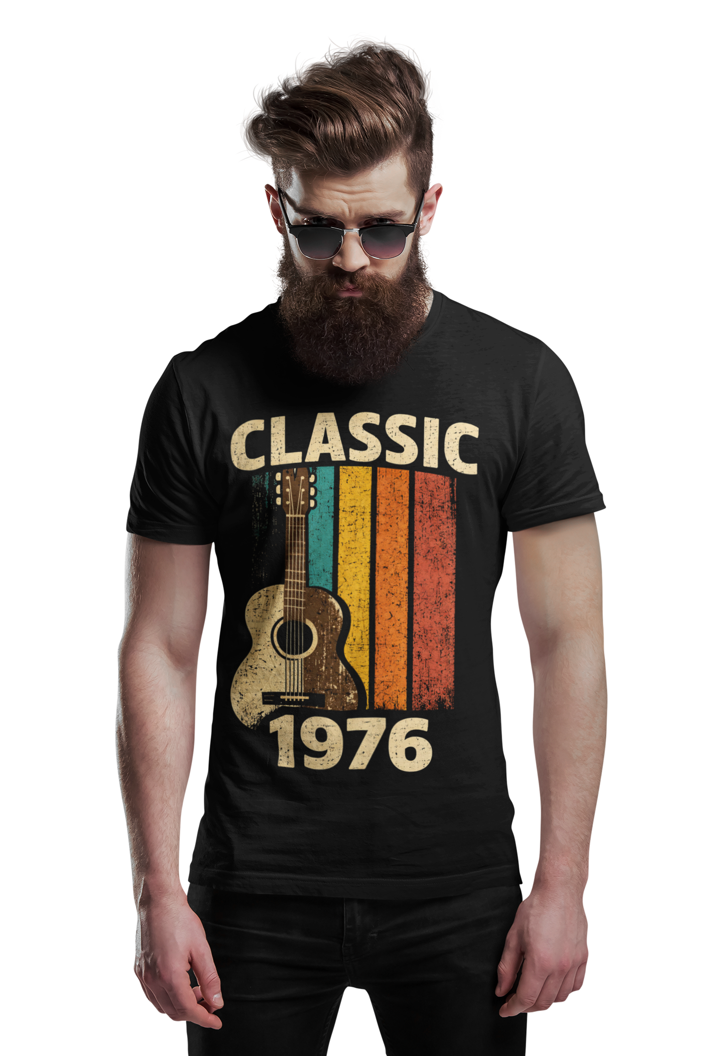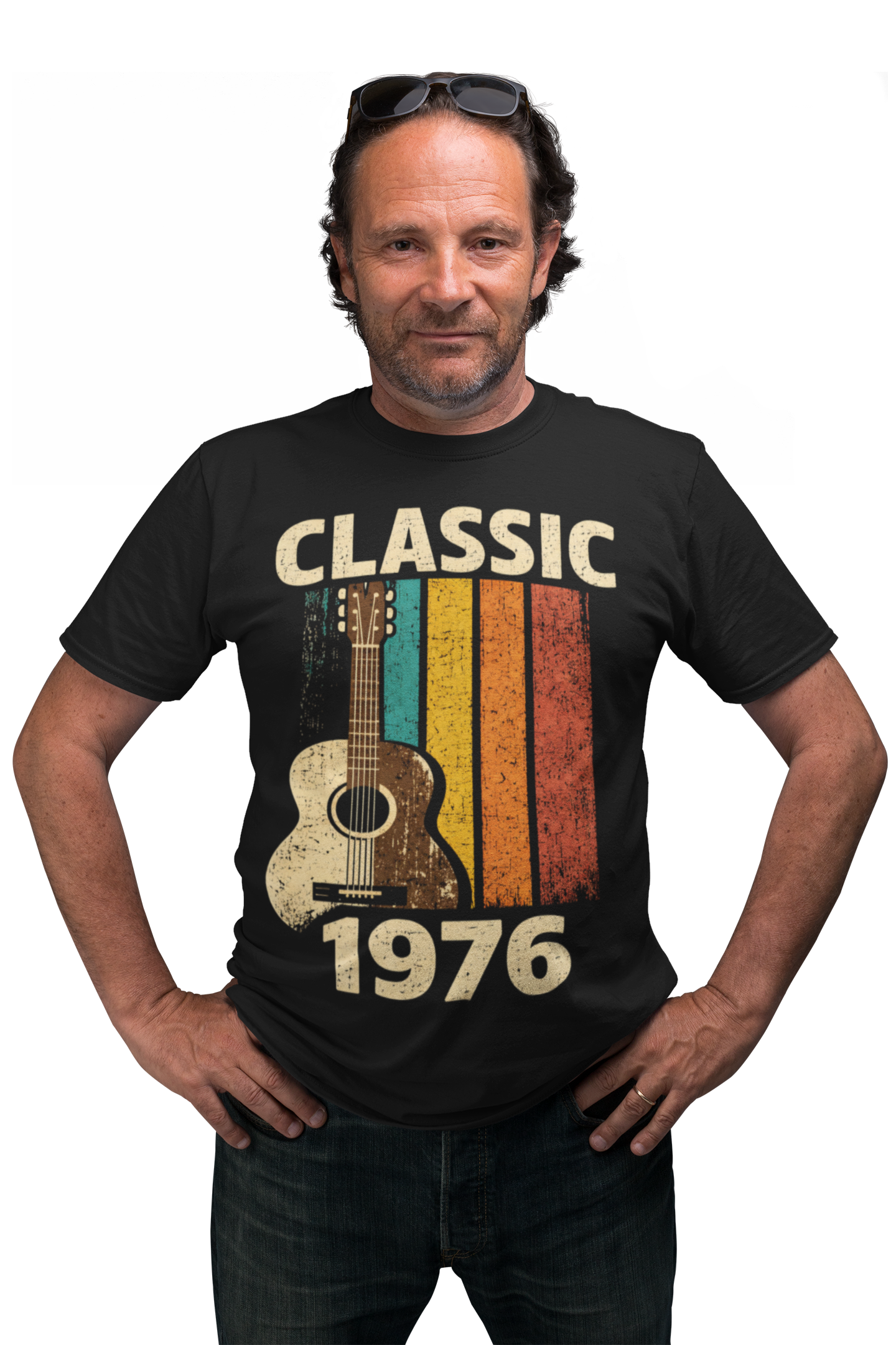 Ta wyjątkowa koszulka męska Classic 1976 to idealny wybór dla mężczyzn, którzy w 2026 roku świętują swoje 50. urodziny i chcą podkreślić je stylem, charakterem oraz miłością do muzyki. Retro design z klasyczną gitarą i kolorowymi pasami w stylu vintage nawiązuje do ponadczasowych brzmień i pokazuje, że rocznik 1976 to prawdziwa legenda.