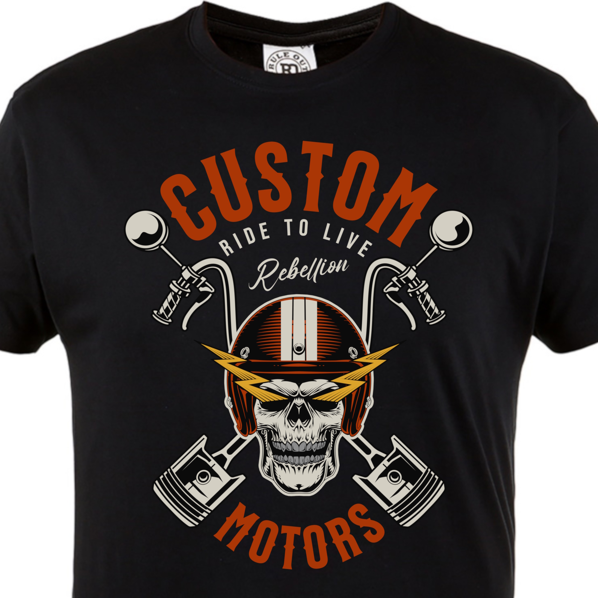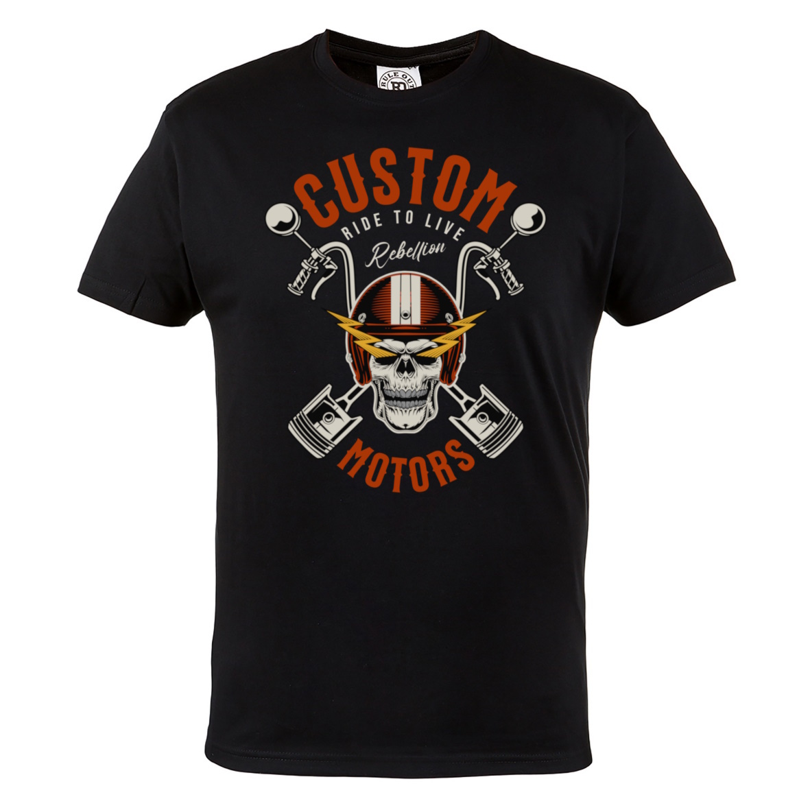 Koszulka męska Custom Motors – czarny t-shirt motocyklowy skull, prezent dla motocyklisty