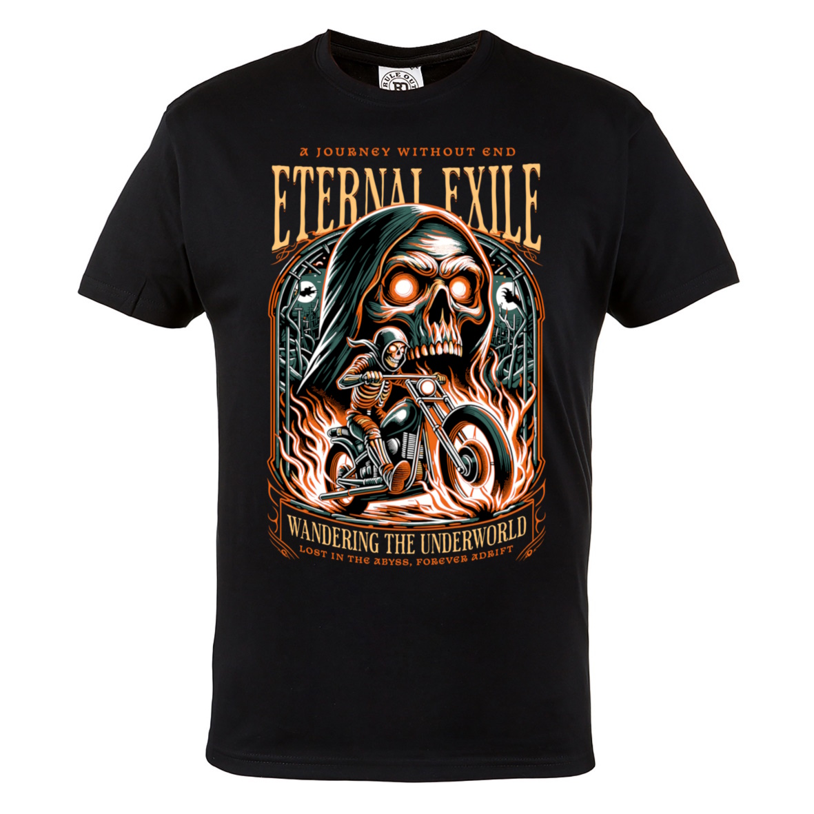 Mocna w przekazie koszulka męska motocyklowa Eternal Exile to propozycja dla fanów dark stylu, skull i motocykli, czarny t-shirt z nadrukiem grim reaper na motorze wyróżnia się dynamiczną grafiką z płonącym motocyklem i klimatem underworld, koszulka wykonana z wysokiej jakości bawełny zapewnia komfort noszenia, przewiewność i trwałość zarówno na co dzień, jak i podczas zlotów oraz wydarzeń motoryzacyjnych, trwały nadruk odporny na pranie i blaknięcie gwarantuje intensywny wygląd przez długi czas, a klasyczny krój zapewnia wygodne dopasowanie i swobodę ruchów, to idealny wybór dla osób szukających produktów takich jak koszulka dla motocyklisty, t-shirt motocyklowy męski, odzież motoryzacyjna oraz prezent dla fana motocykli i stylu dark, sprawdź również inne modele w naszej ofercie i znajdź idealny wzór dla siebie.