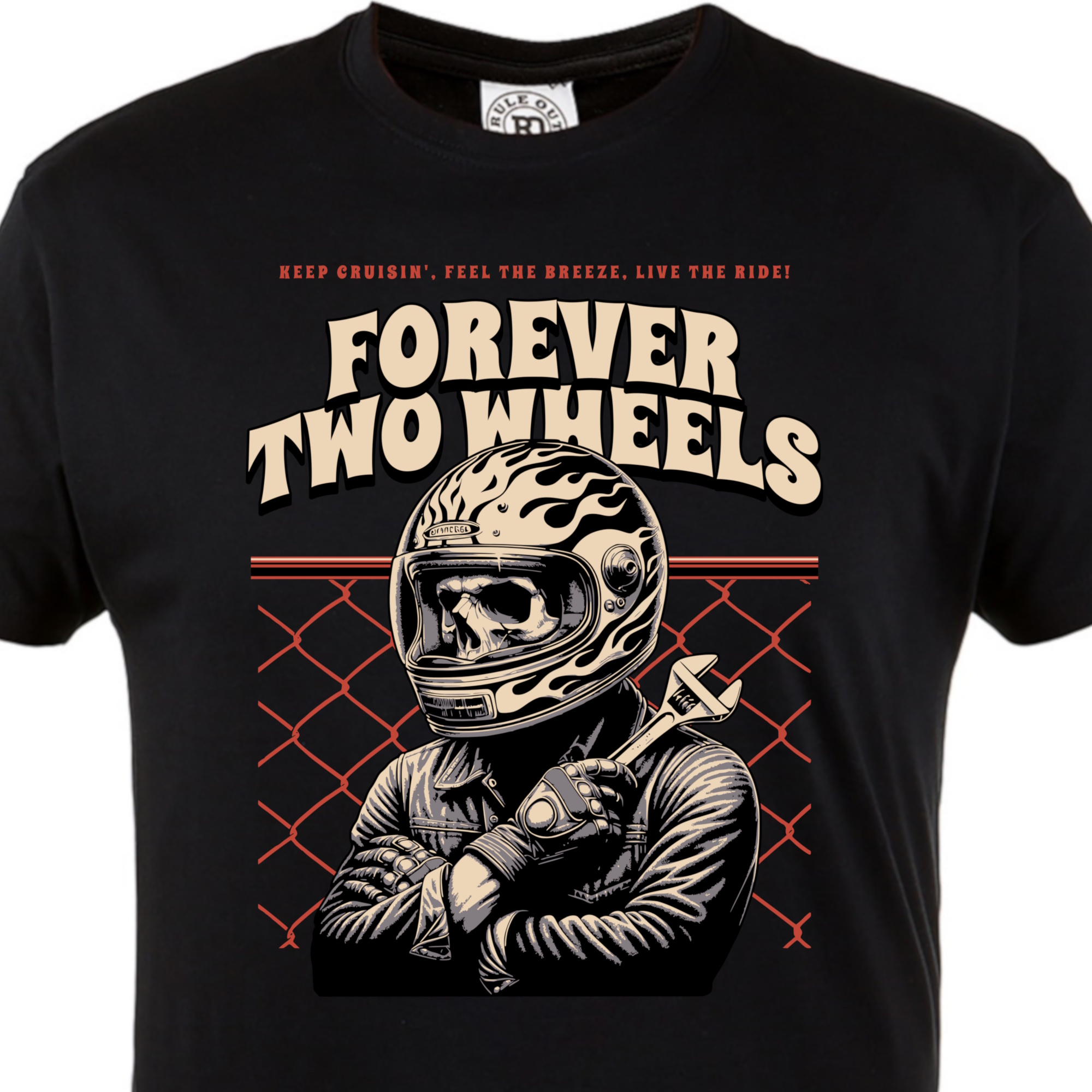 Koszulka męska Forever Two Wheels – czarny t-shirt motocyklowy, biker styl, prezent dla motocyklisty