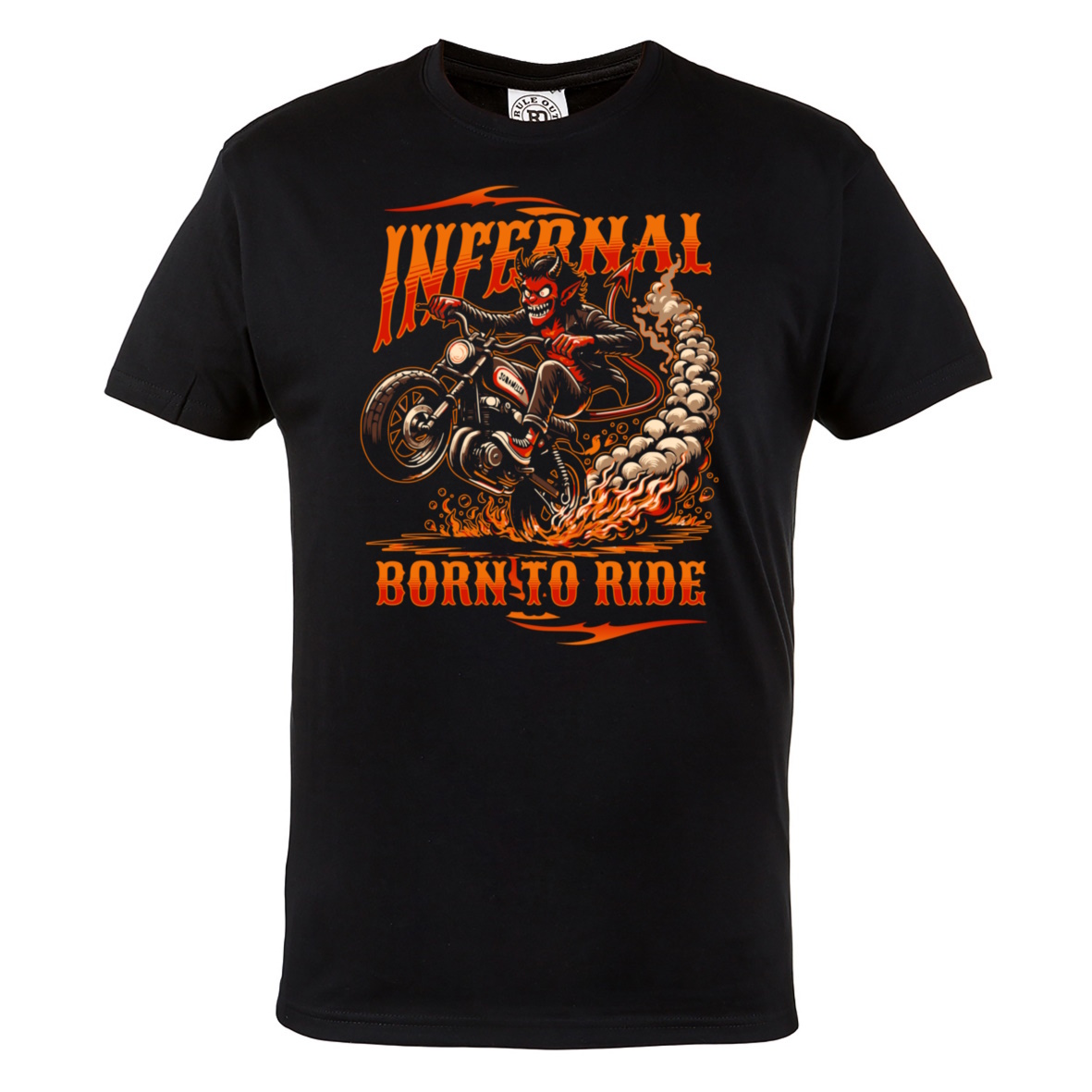Koszulka męska Infernal Born To Ride – czarny t-shirt motocyklowy z diabłem, biker, ogień, rebel styl