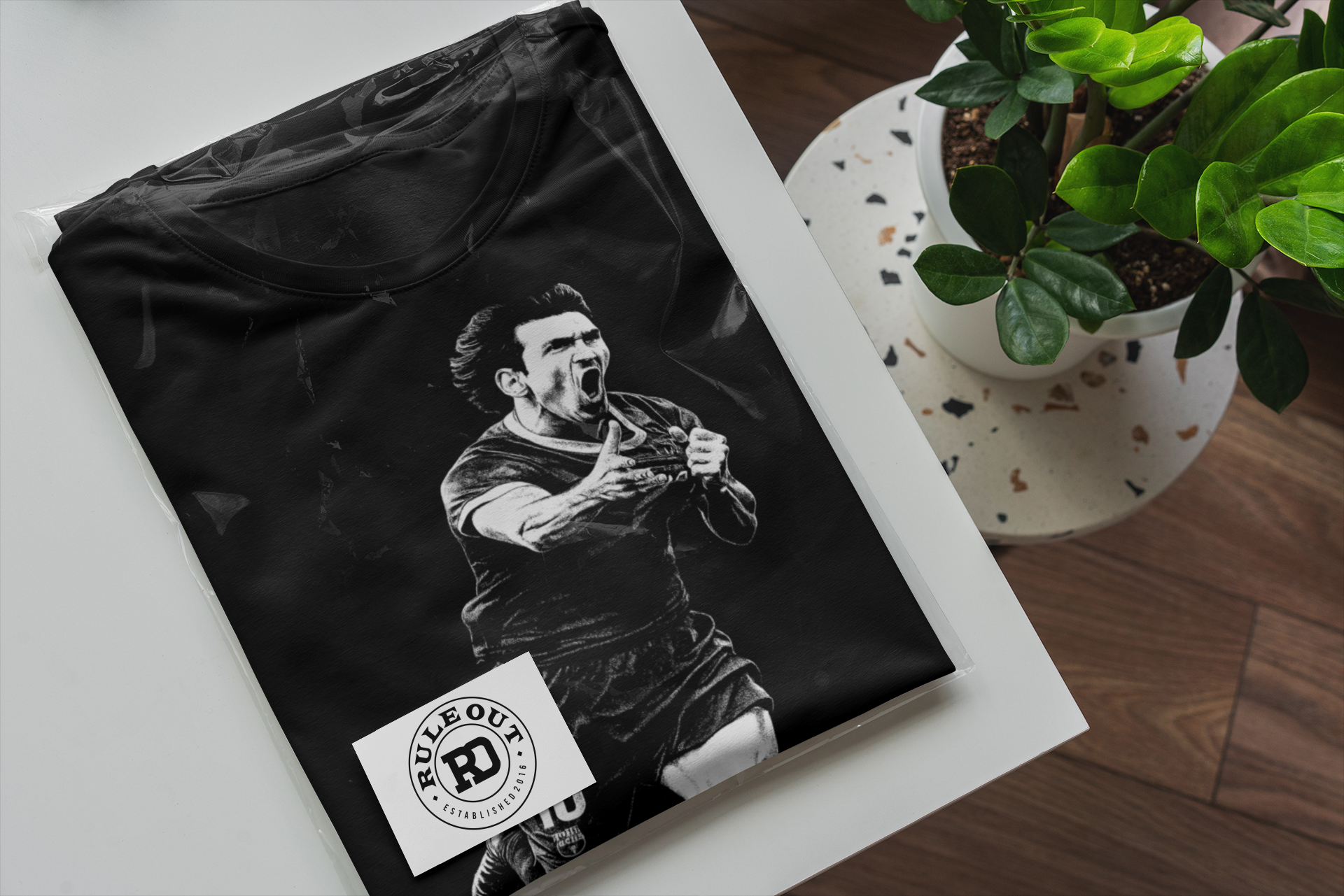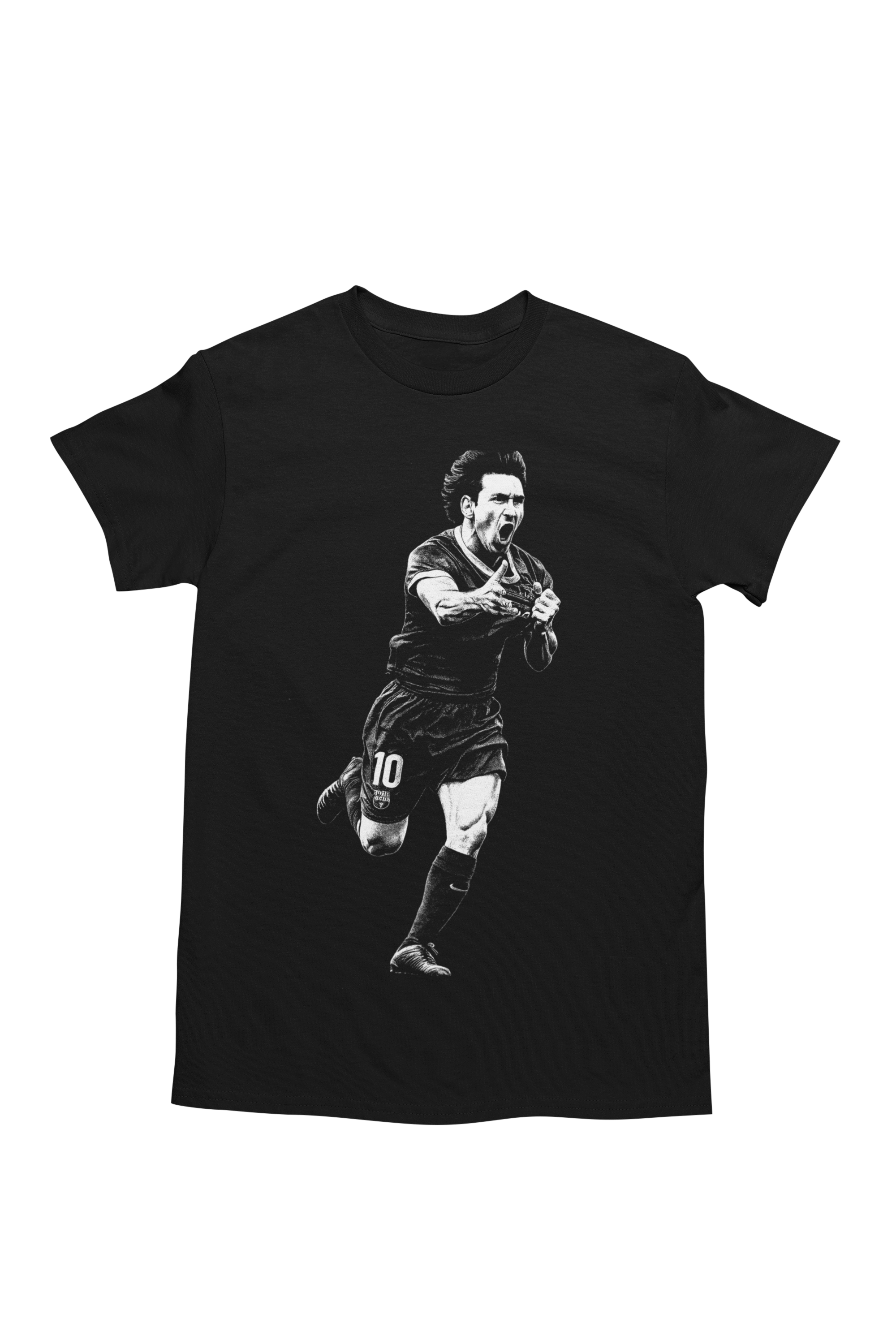 Czarno-biały nadruk przedstawia Messiego w chwili pełnej pasji i determinacji, doskonale oddając jego boiskowy charakter oraz magię, jaką tworzy na murawie. Minimalistyczna, artystyczna grafika sprawia, że koszulka prezentuje się nowocześnie i ponadczasowo.