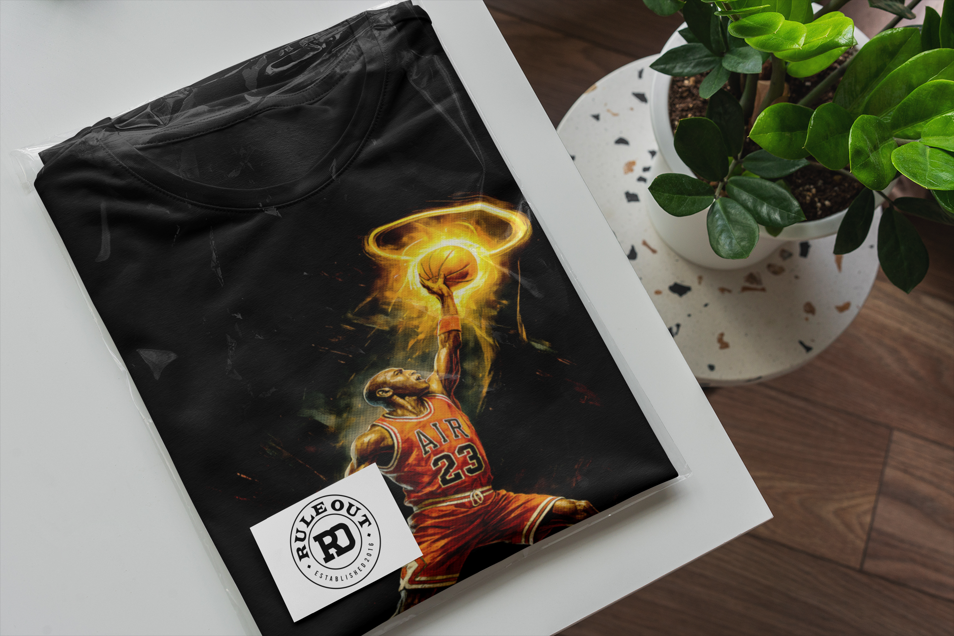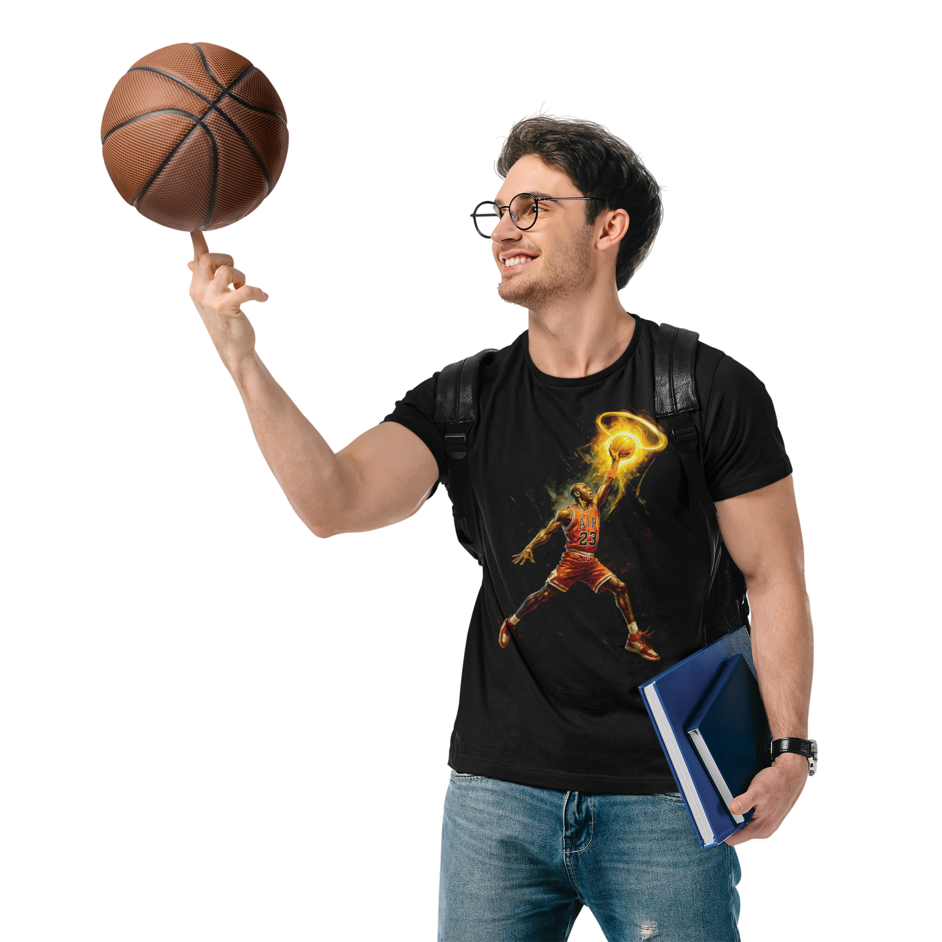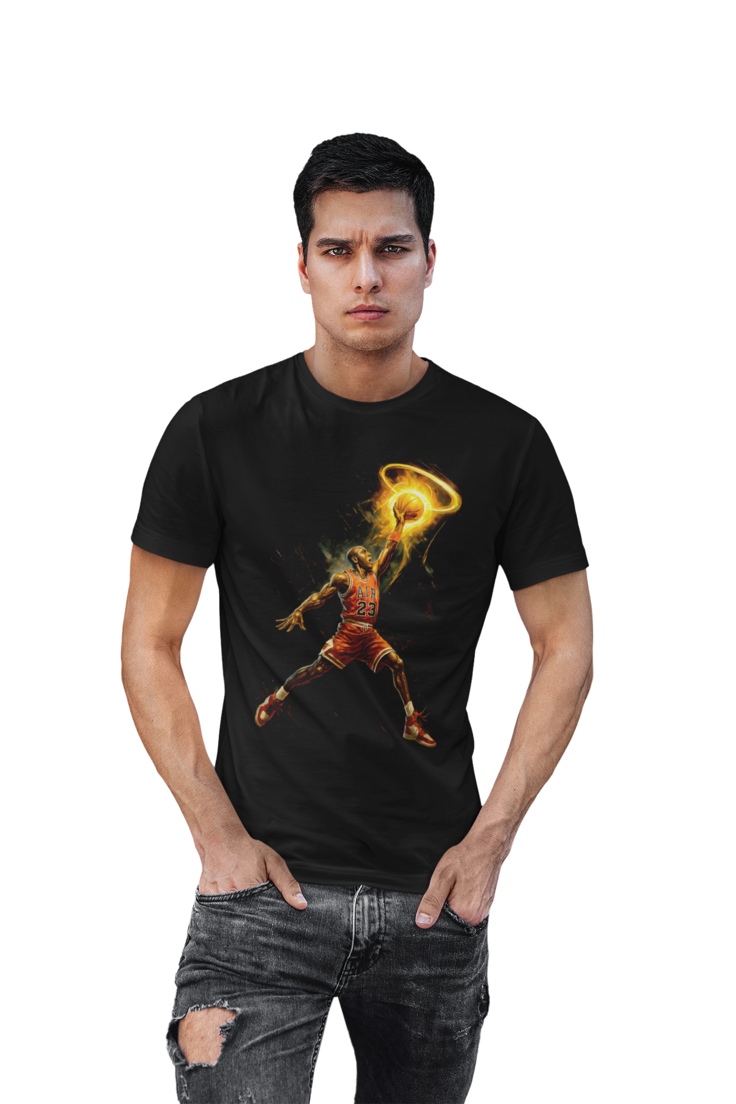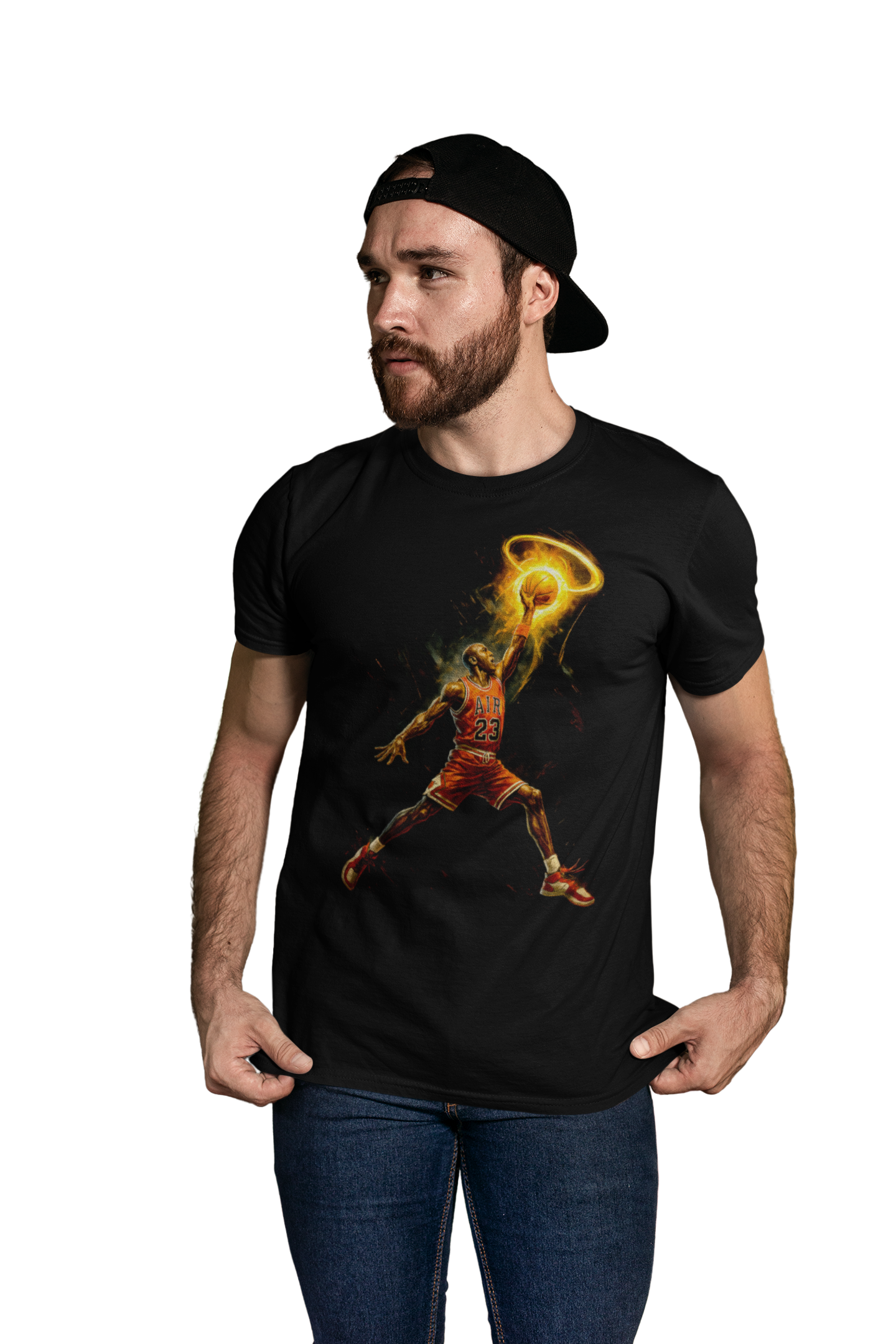 Ta męska koszulka koszykarska inspirowana Michaelem Jordanem to wyjątkowa propozycja dla fanów ligi NBA, klasycznej koszykówki i legendarnej dynastii Chicago Bulls. Efektowny nadruk przedstawia Michaela Jordana w kilku ikonicznych ujęciach meczowych – w ataku, z piłką oraz w charakterystycznych pozach, które na zawsze zapisały się w historii koszykówki. Kultowy numer 23 oraz barwy Bulls jednoznacznie podkreślają jego status koszykarskiej ikony.
