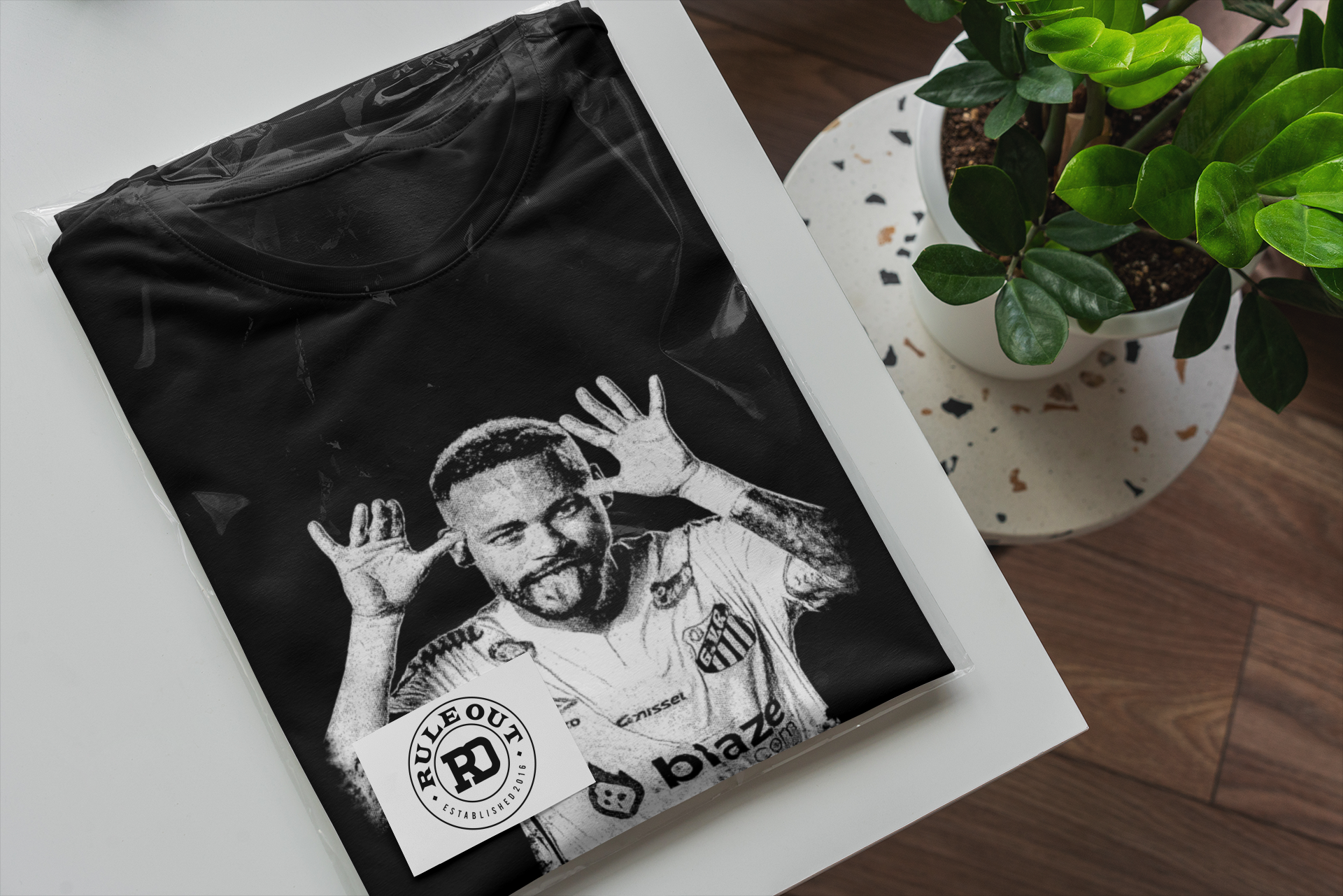 Czarno-biały nadruk przedstawia Neymara w charakterystycznej celebracji, która podkreśla jego pewność siebie i boiskową charyzmę. Surowa, artystyczna grafika świetnie oddaje klimat brazylijskiego futbolu i sprawia, że koszulka wyróżnia się na tle klasycznych piłkarskich gadżetów.