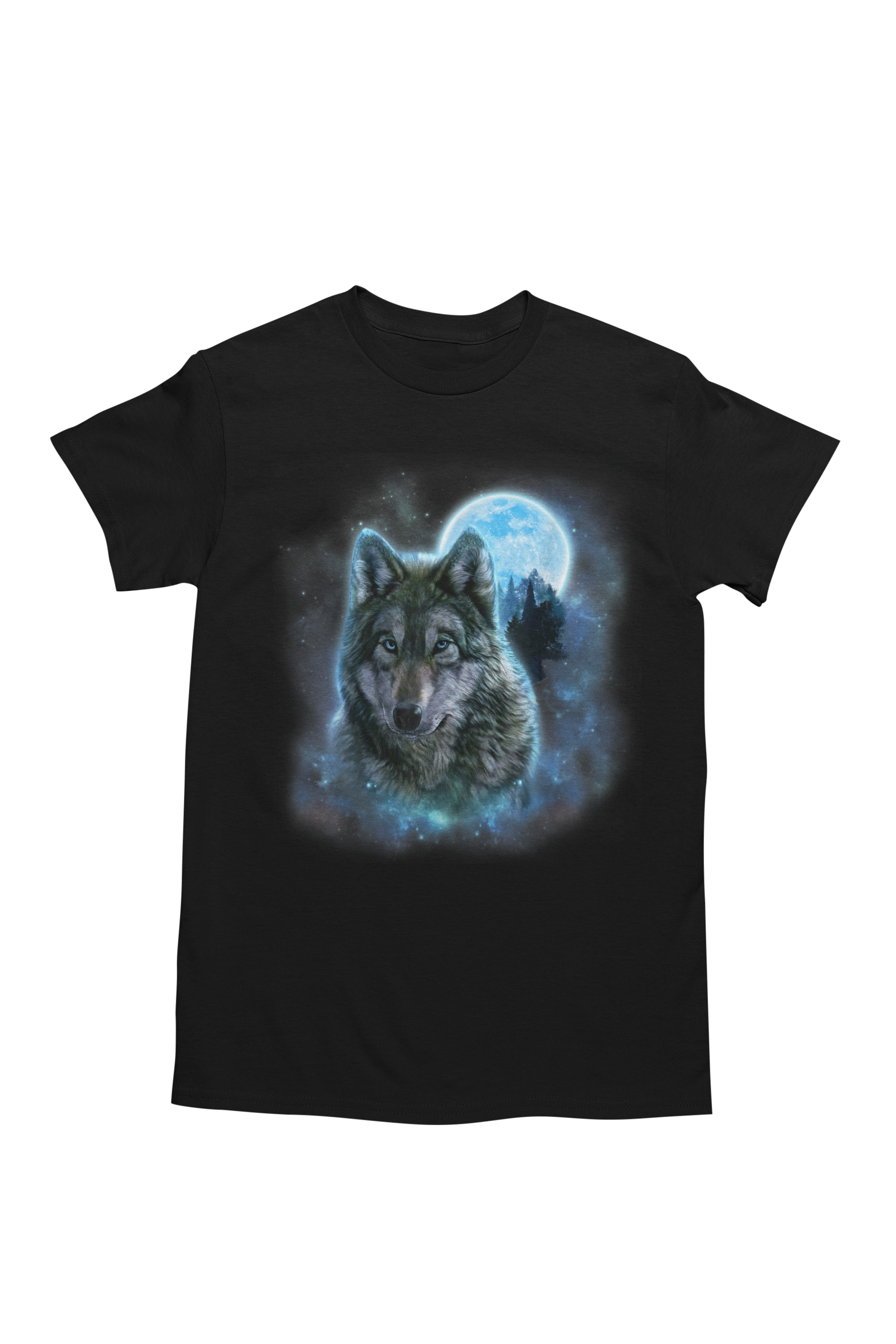 Koszulka męska wilk księżyc wolf czarna koszulka z wilkiem natura las