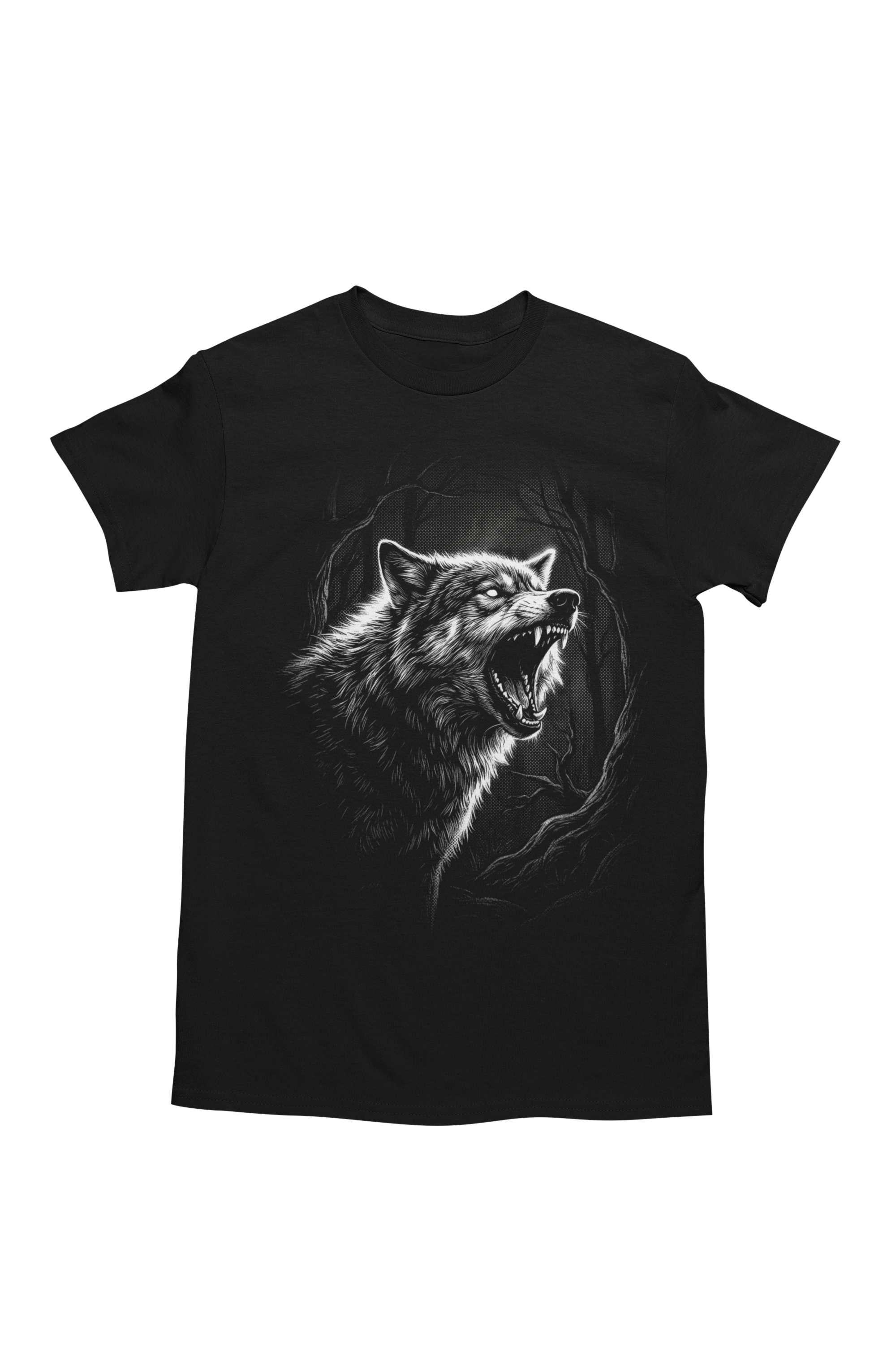 Koszulka męska z nadrukiem wilka przedstawiająca warczącego wilka w mrocznym lesie to propozycja dla mężczyzn, którzy lubią wyraziste motywy inspirowane dziką naturą. Realistyczna grafika ukazująca wilka z odsłoniętymi kłami nadaje koszulce mocny i charakterystyczny wygląd, który przyciąga uwagę i podkreśla indywidualny styl. Motyw wilka od lat kojarzony jest z odwagą, instynktem, wolnością oraz niezależnością, dlatego koszulka z wilkiem doskonale pasuje do osób ceniących siłę i dziki charakter przyrody.