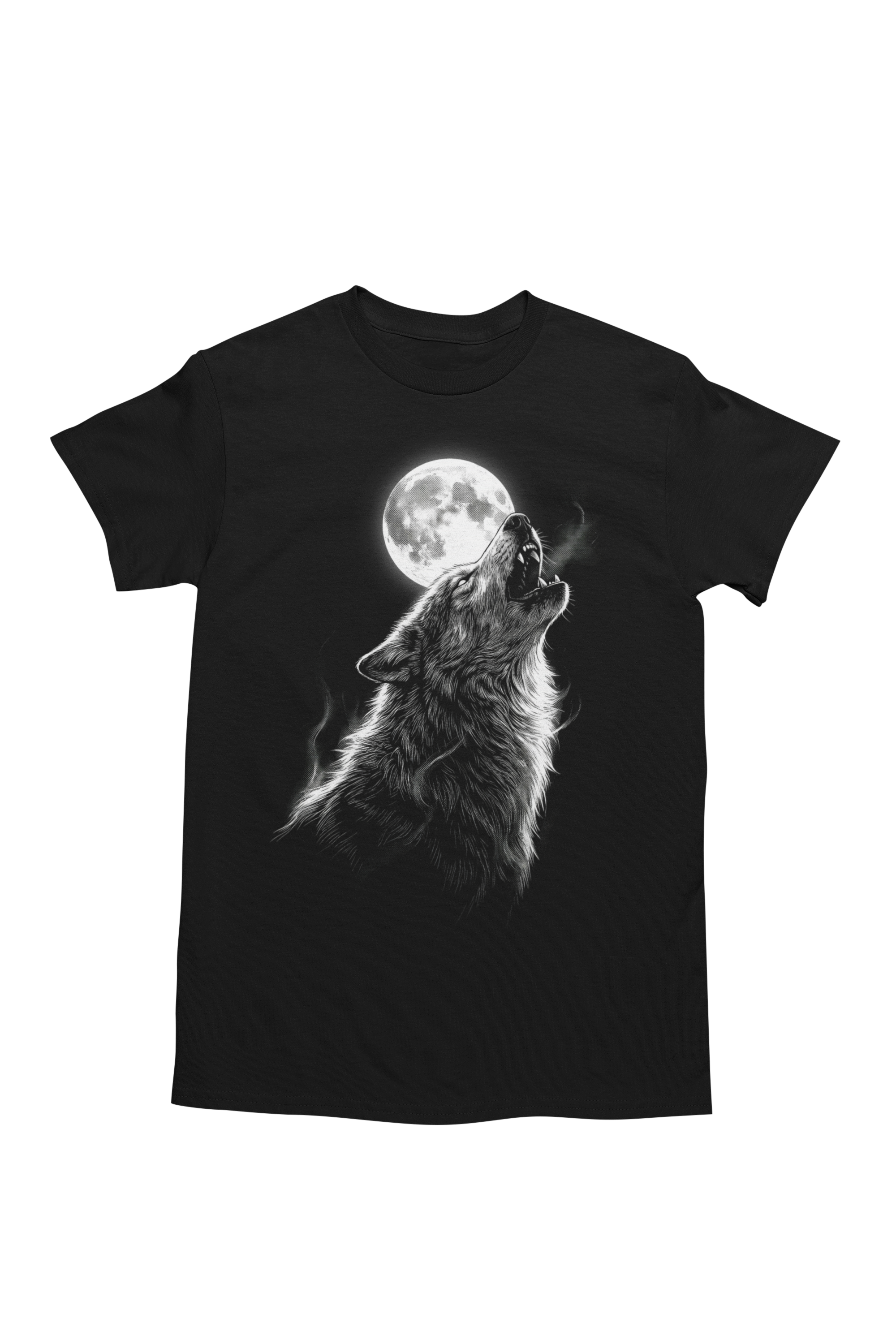 Koszulka męska z nadrukiem wilka wyjącego do księżyca to wyjątkowy t-shirt inspirowany dziką naturą i tajemniczym klimatem nocnego lasu. Grafika przedstawia wilka unoszącego pysk w stronę pełni księżyca, co tworzy mocny i charakterystyczny motyw przyciągający uwagę. Symbolika wilka od wieków związana jest z wolnością, instynktem, siłą oraz niezależnością, dlatego koszulka z wilkiem i księżycem doskonale podkreśla indywidualny styl oraz zamiłowanie do natury.