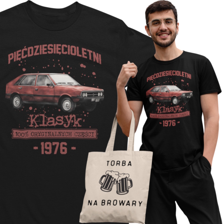 Koszulka prezent na 50 urodziny 1976 Klasyk PRL FSO Polonez torba gratis