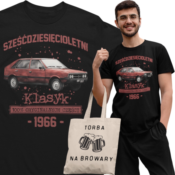 Koszulka prezent na 60 urodziny 1966 Klasyk PRL FSO Polonez torba gratis