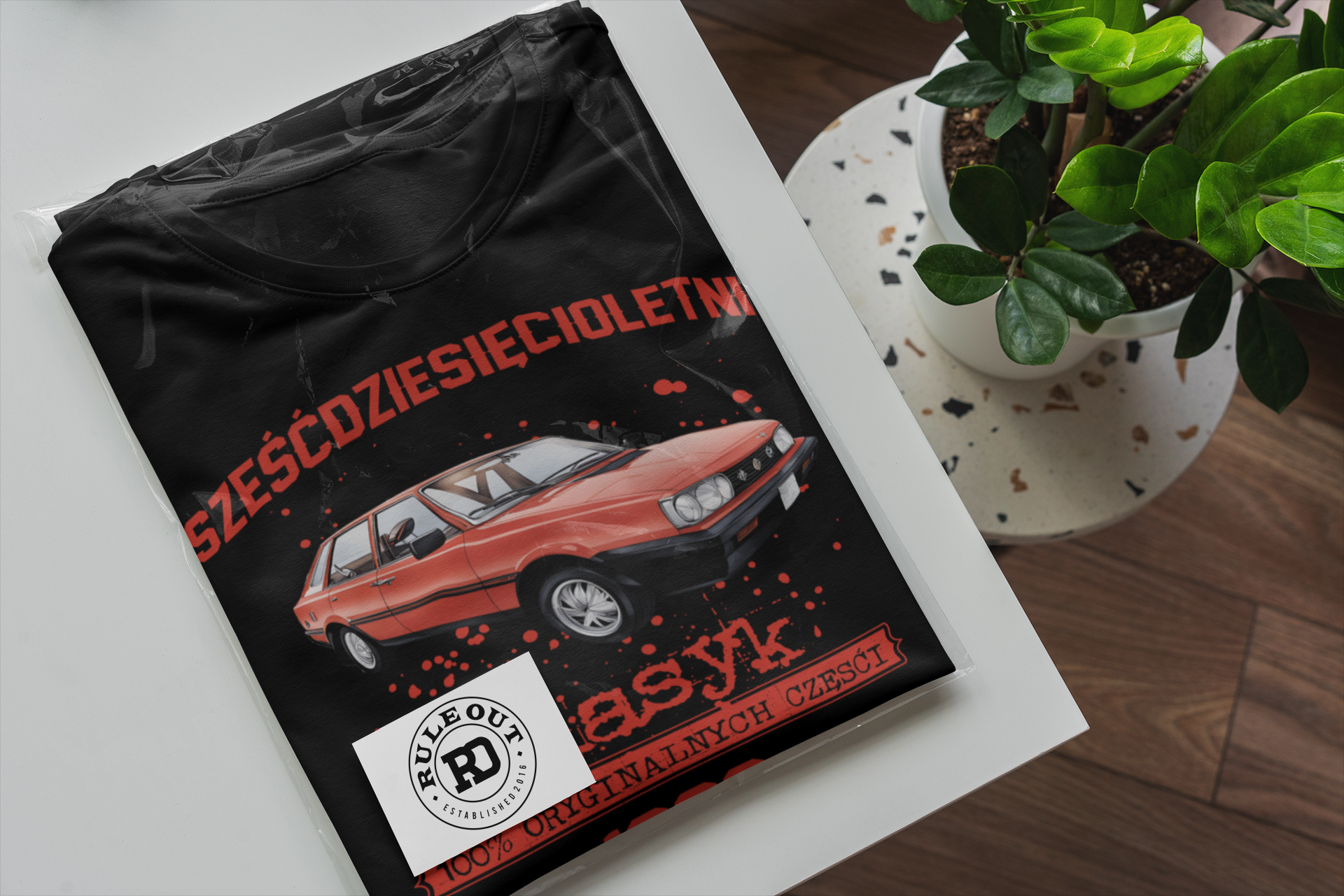 - Każda koszulka zapakowana w foliowy woreczek, gotowa do wręczenia.