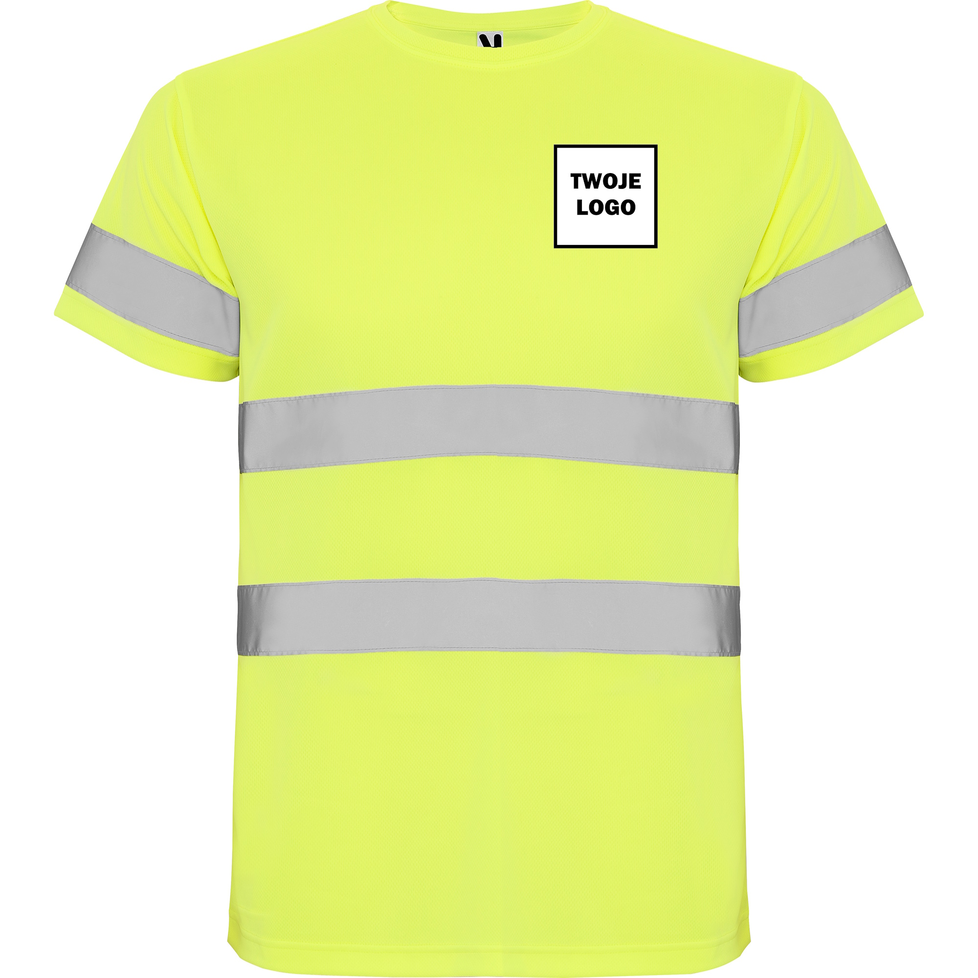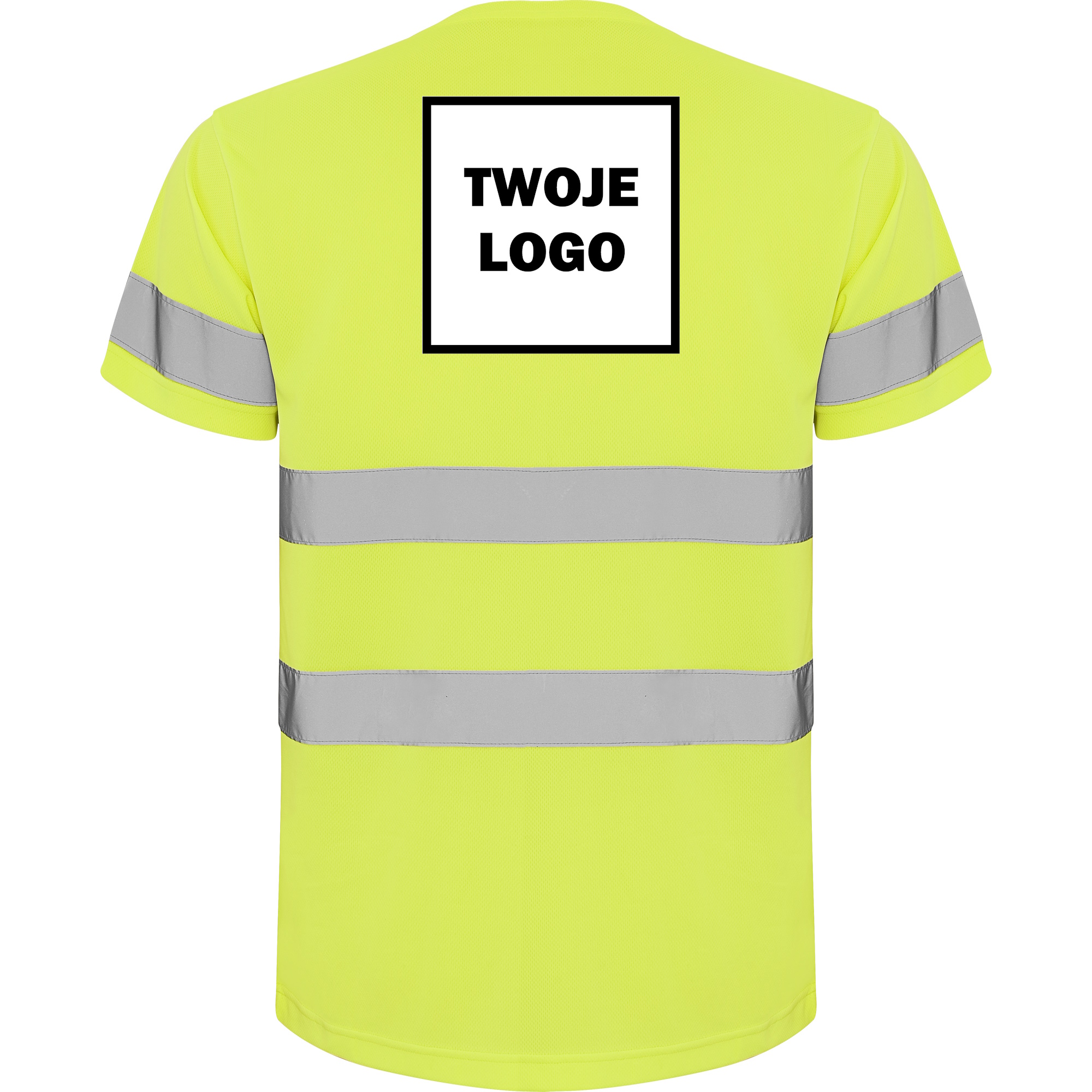 Koszulka robocza odblaskowa 100% poliester 130 g HIGH VIS z nadrukiem DTF Żółty Fluorescencyjny