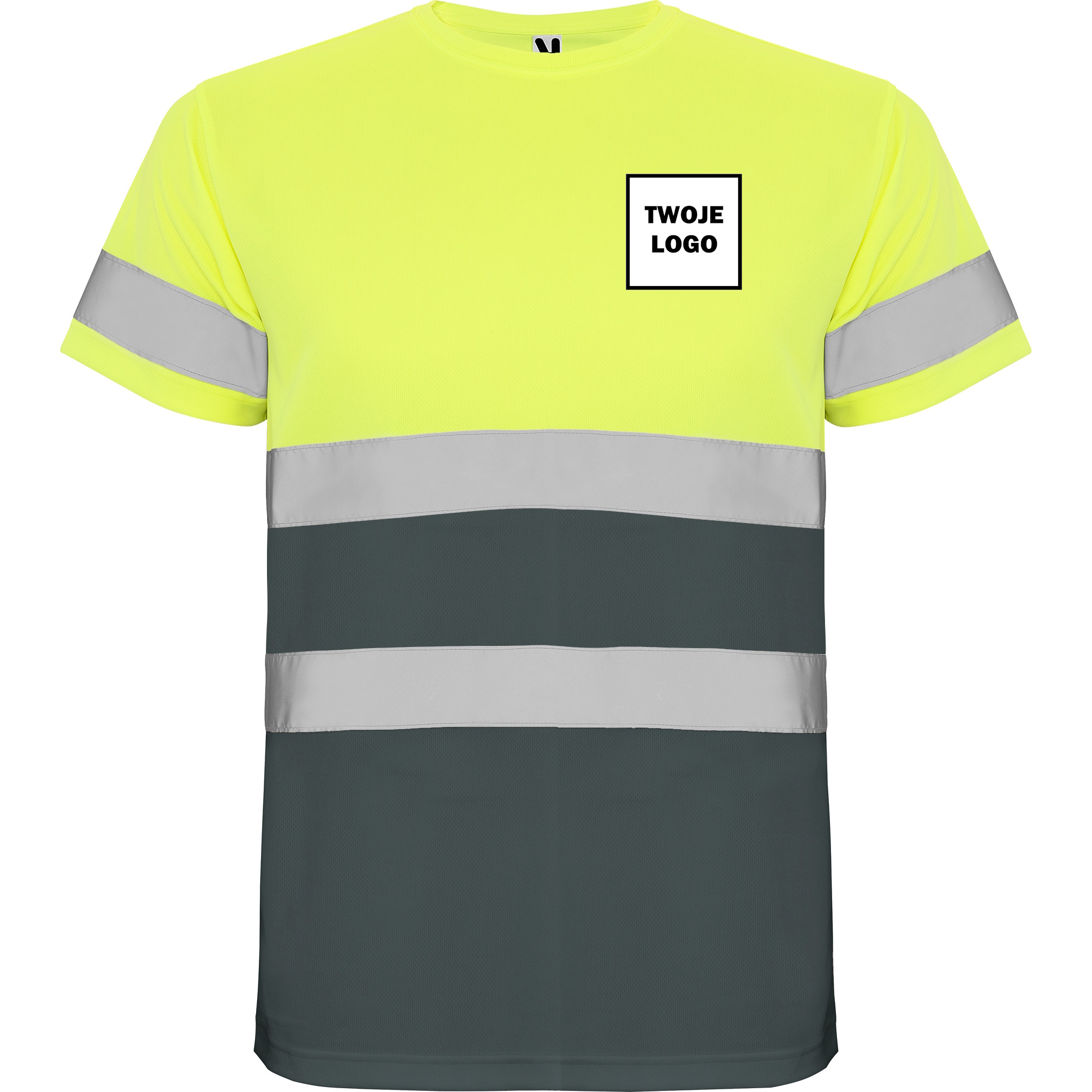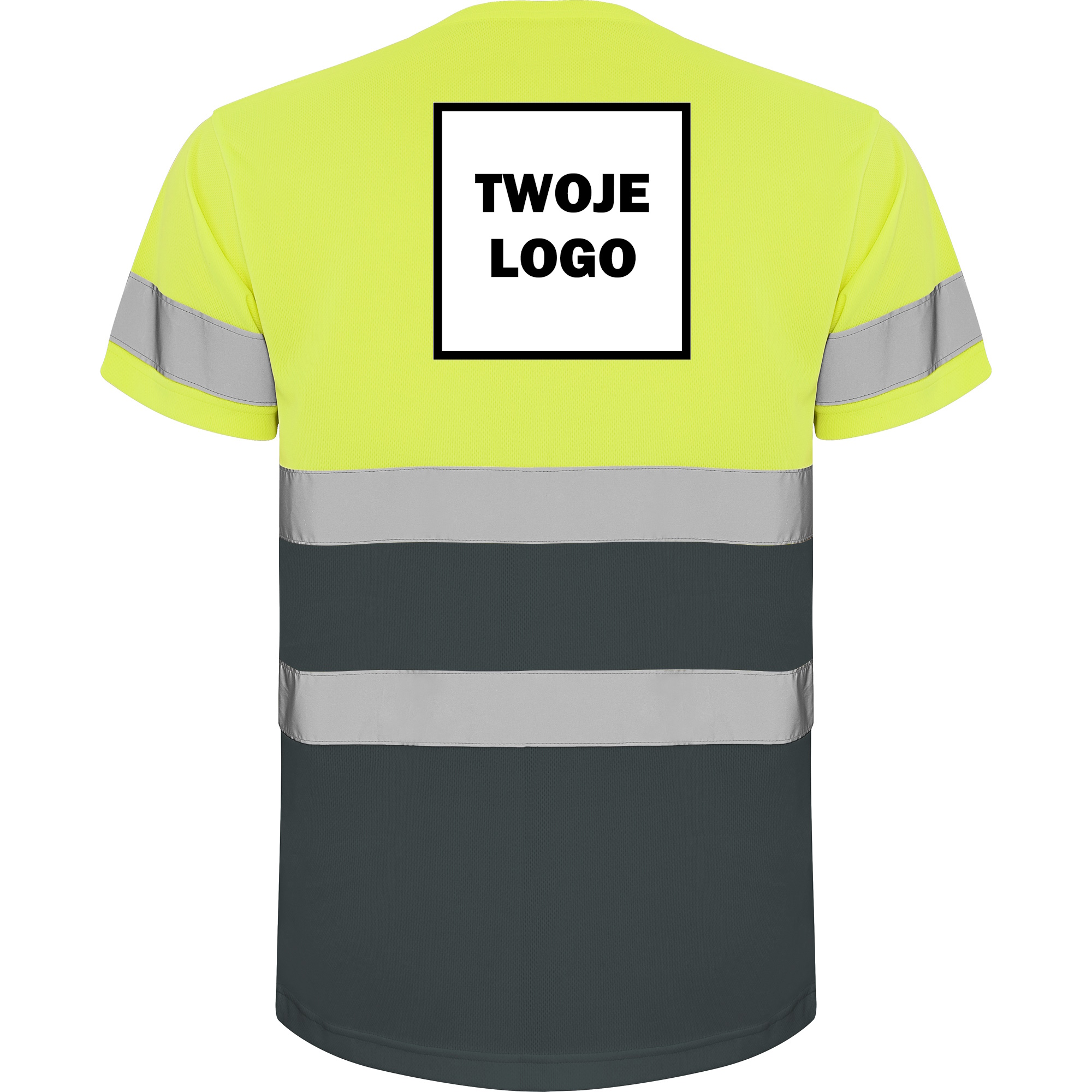 Koszulka robocza odblaskowa 100% poliester 130 g HIGH VIS z nadrukiem DTF Żółty/ Grafitowy Fluorescencyjny (1)