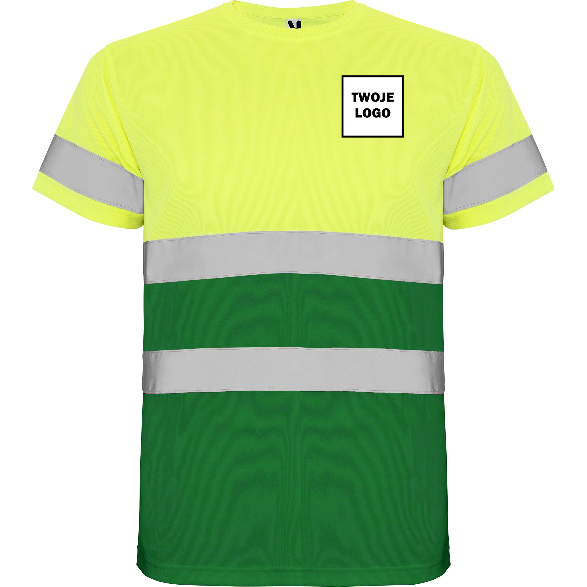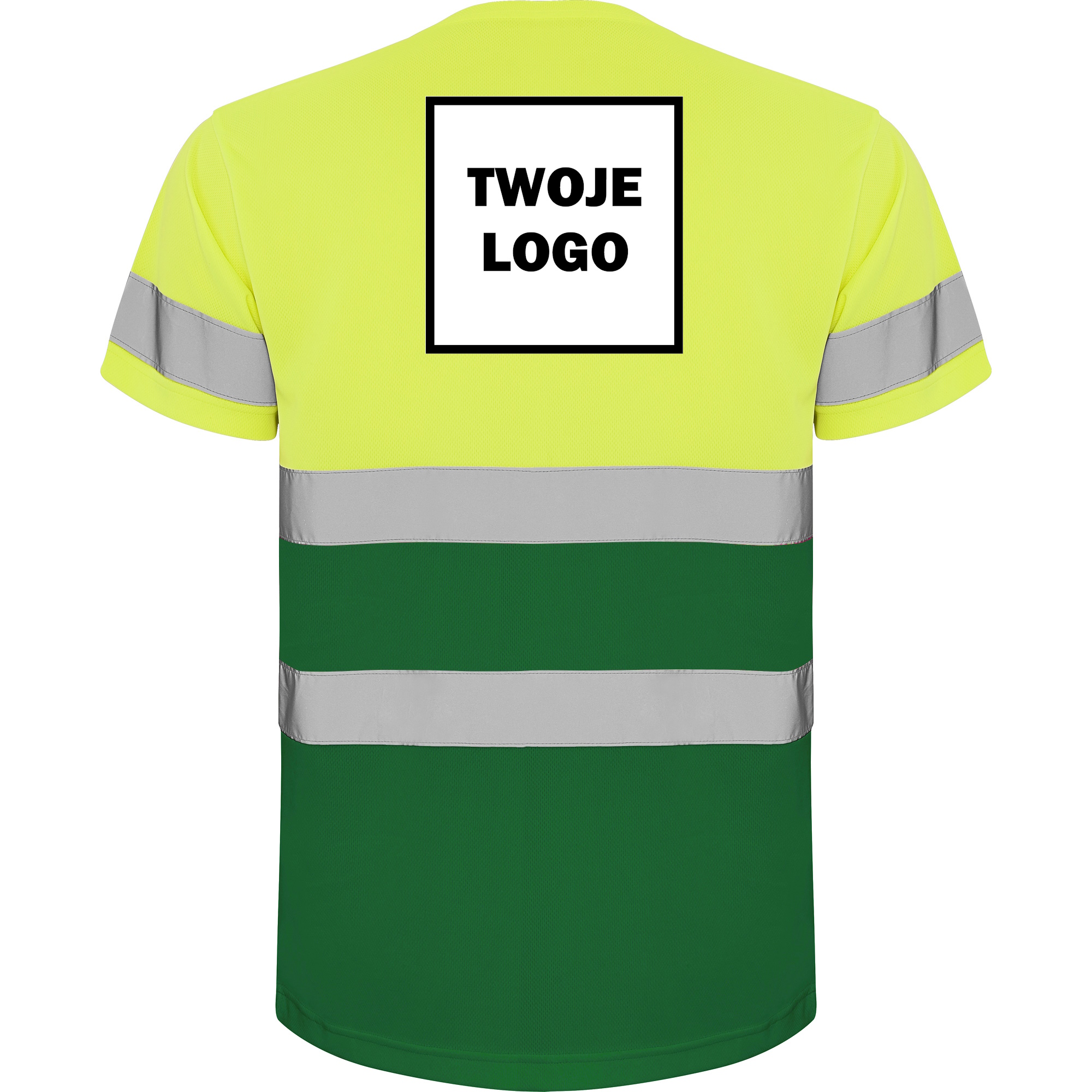 Koszulka robocza odblaskowa 100% poliester 130 g HIGH VIS z nadrukiem DTF Żółty/Zielony Fluorescencyjny