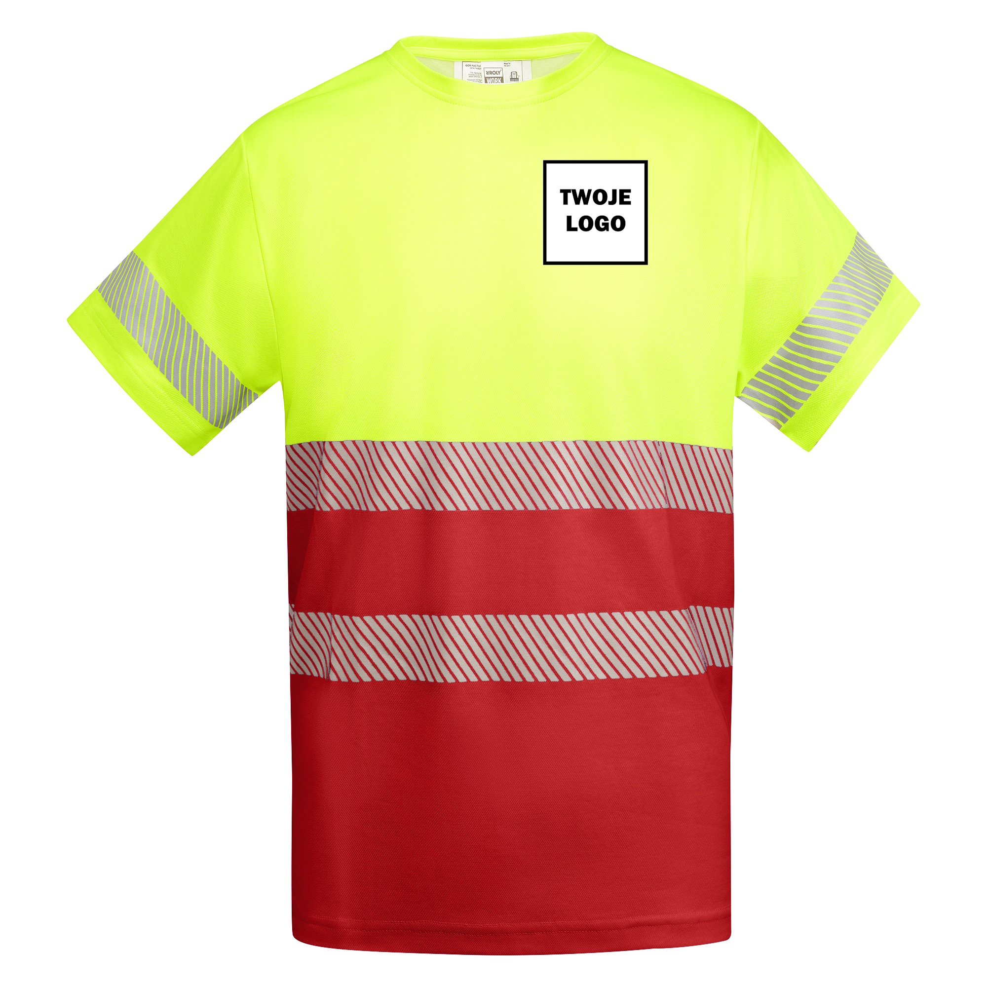 Koszulka robocza odblaskowa HIGH VIS 170 g z nadrukiem DTF Żółty/Czerwony Fluorescencyjny