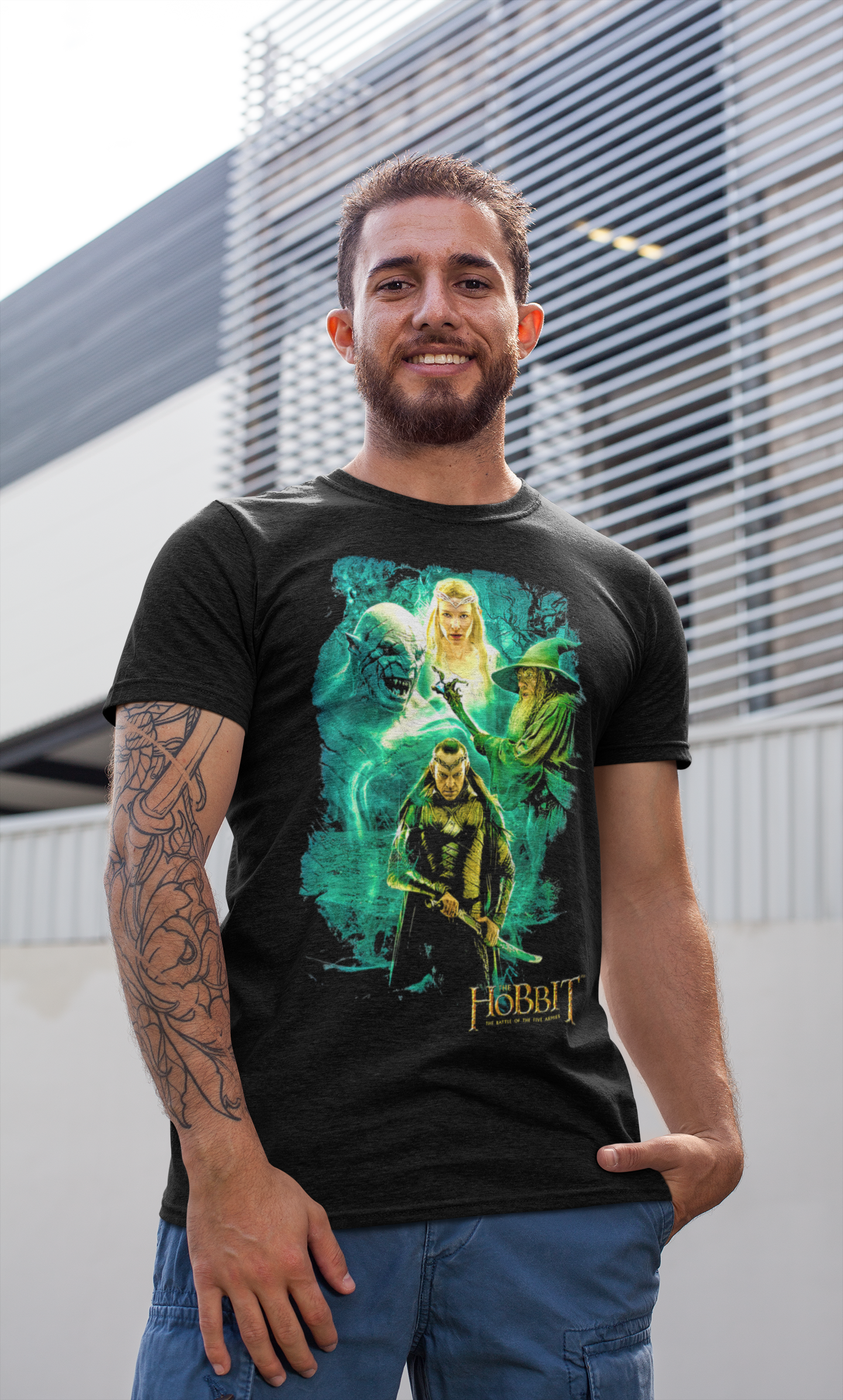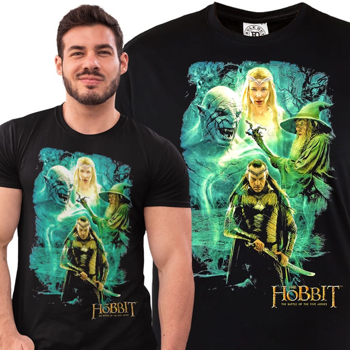 Unikatowa koszulka bawełniana z oryginalnym nadrukiem z serii filmów na podstawie bestsellerowych powieści Tolkiena - Hobbit. To niezwykły element garderoby dla prawdziwych fanów ekranizacji z gatunku fantasy.