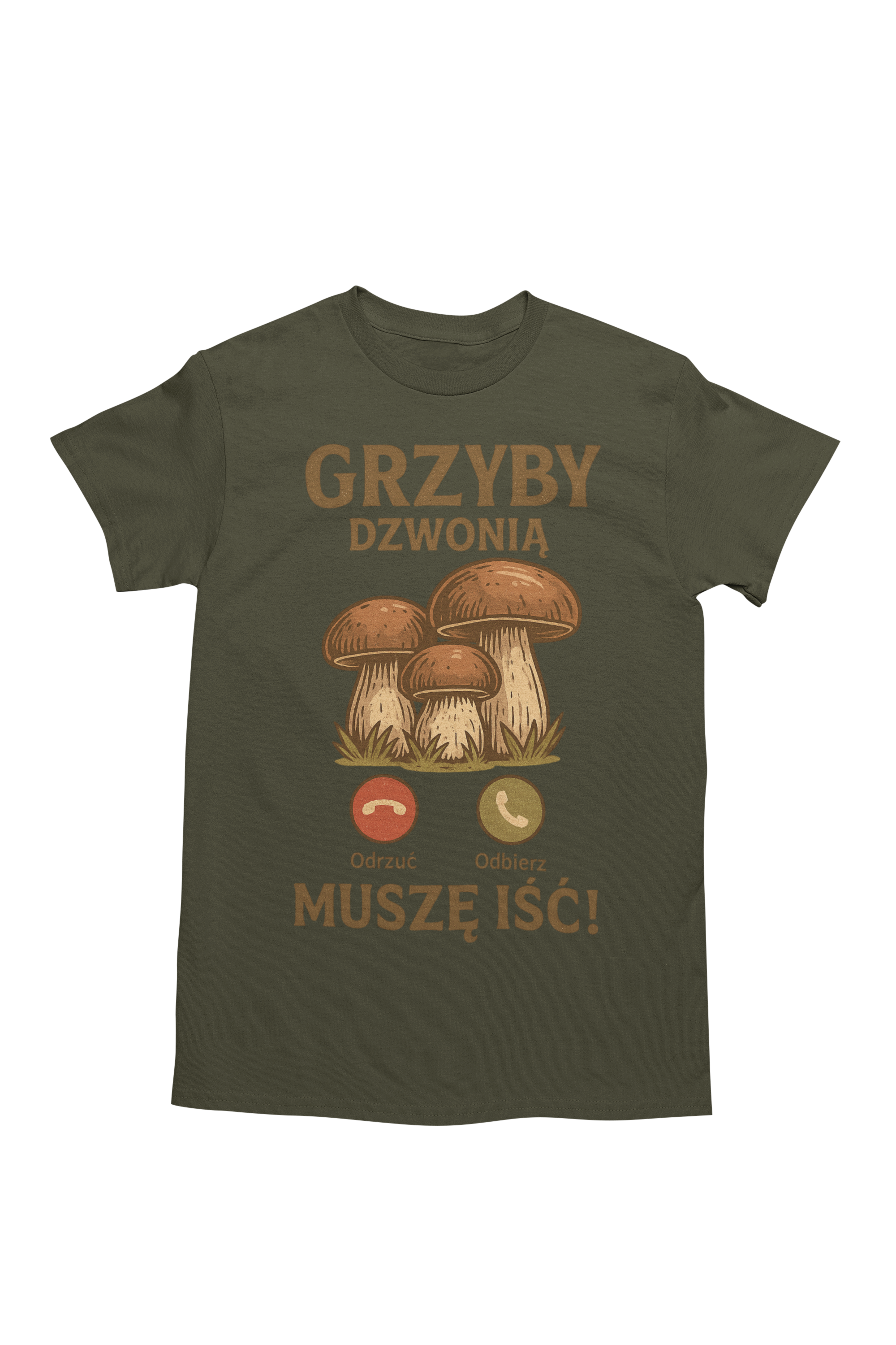 ➡️ Oryginalny nadruk – podkreśla pasję do grzybobrania