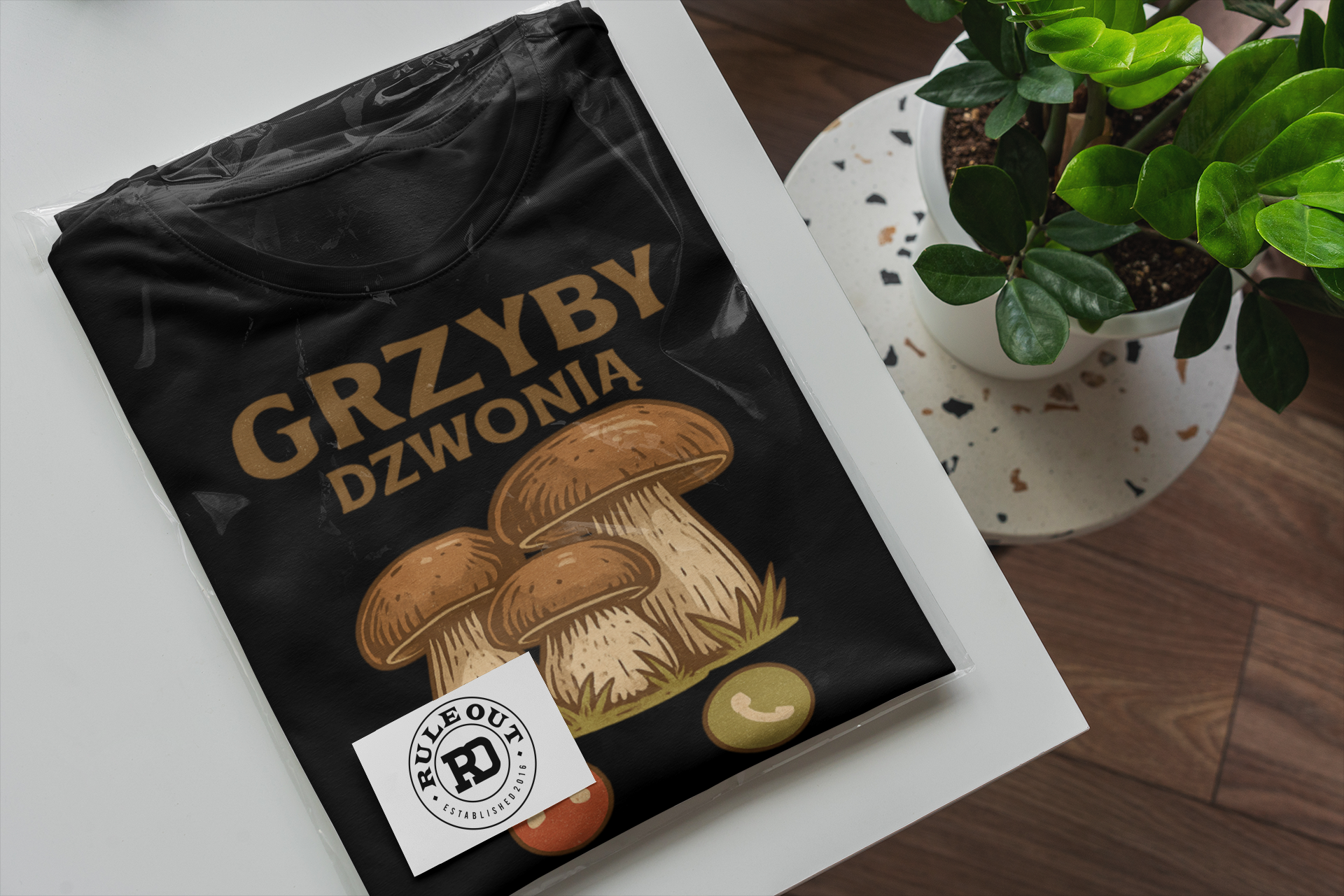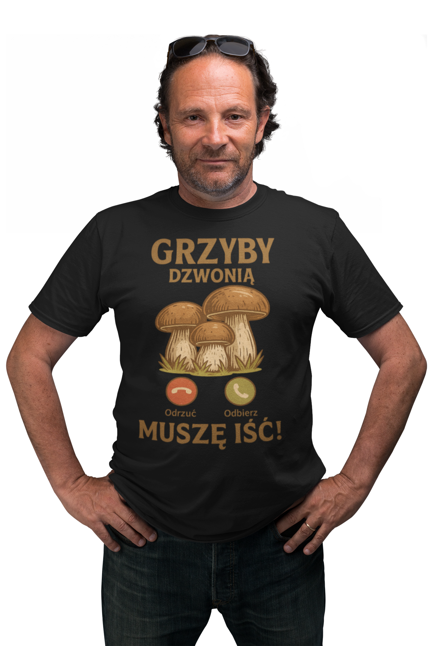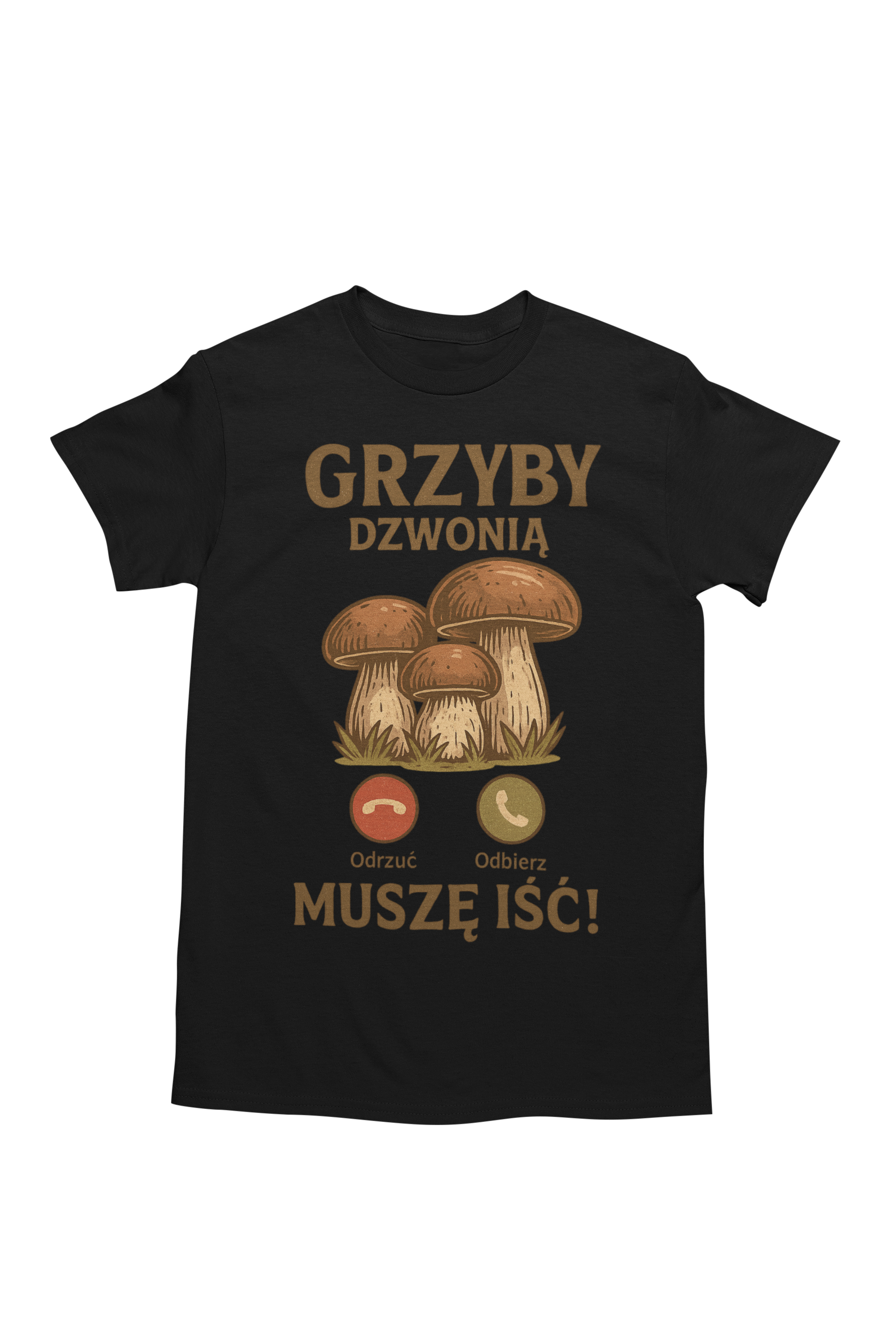 ➡️ Oryginalny nadruk – podkreśla pasję do grzybobrania