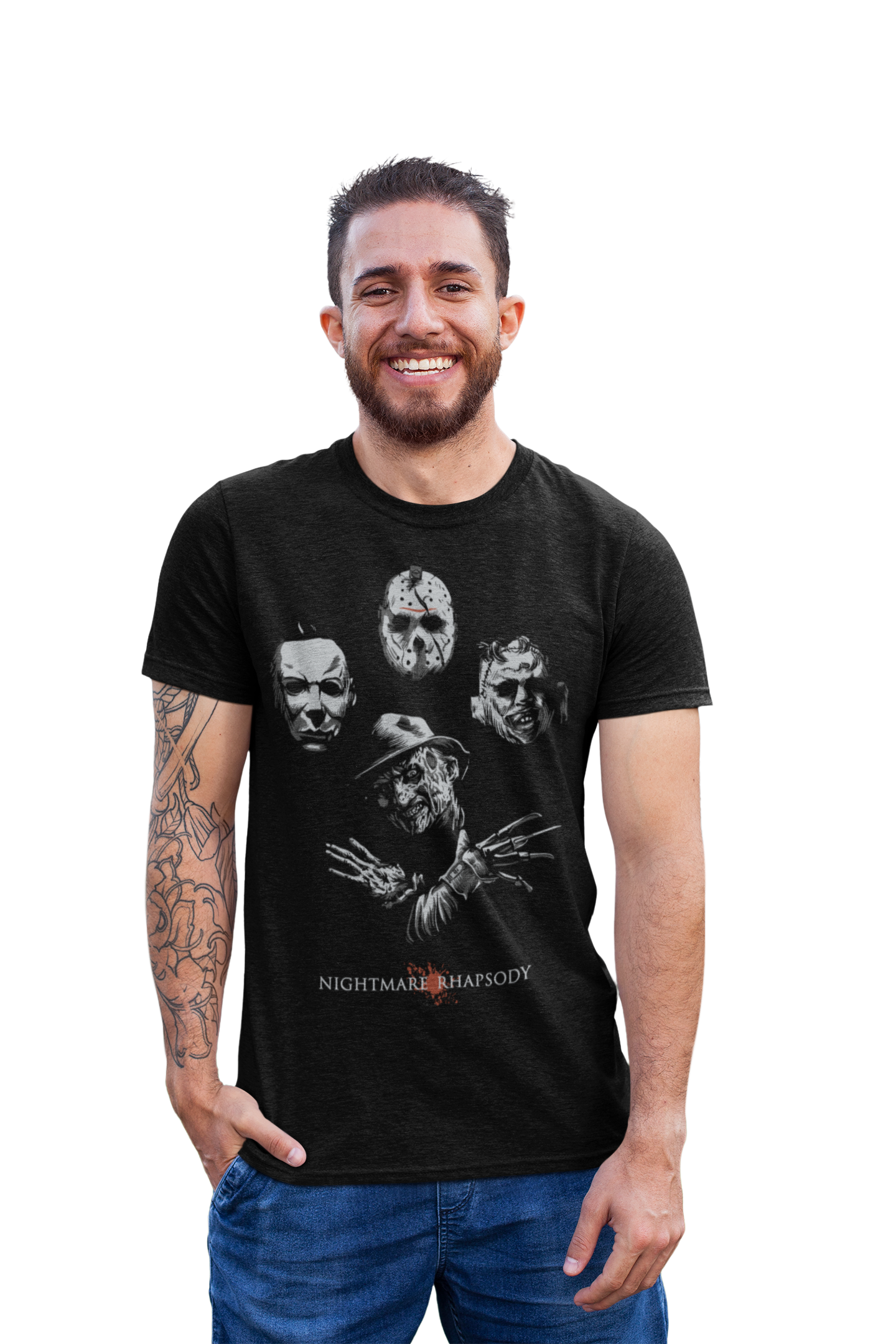 MĘSKA KOSZULKA FILMOWA Z NADRUKIEM NA HALLOWEEN HORROR NIGHTMARE RHAPSODY POSTACIE Z HORRORÓW