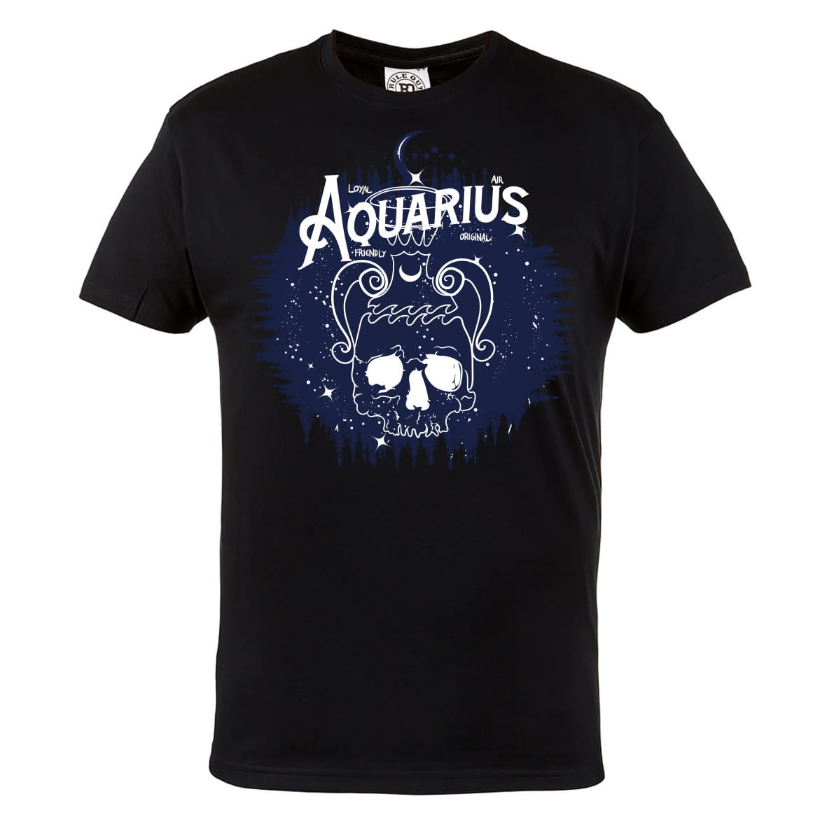 T-shirt dla osób zainteresowanych astrologią - wodnik na gwieździstym niebie z cechami charakteru: przyjazny, lojalny, przyjacielski.