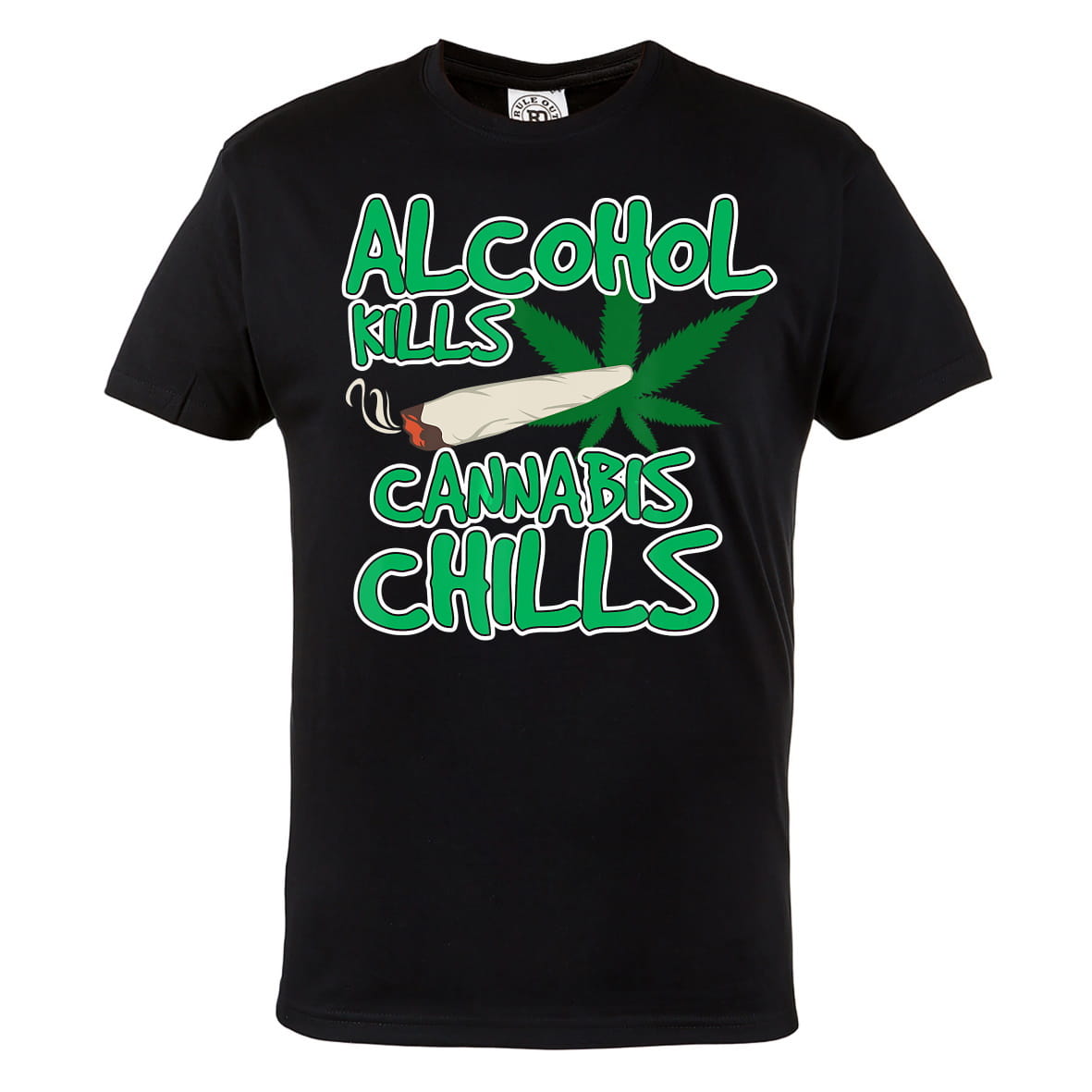 MĘSKA KOSZULKA MARIHUANA ZIOŁO WEED 420 ALCOHOL KILLS CANNABIS CHILLS