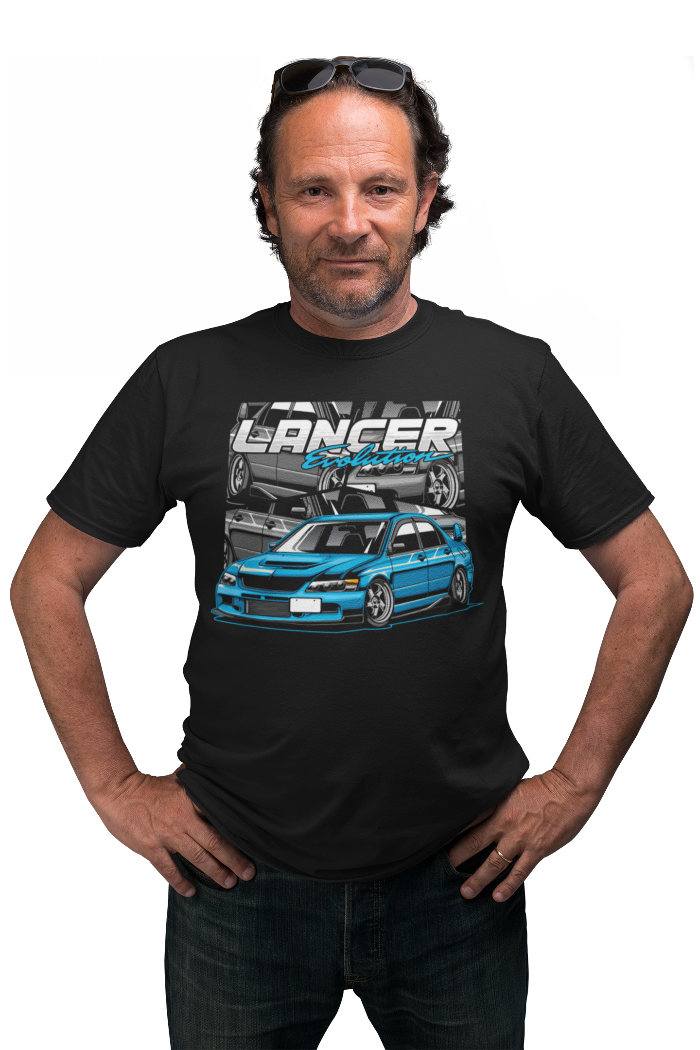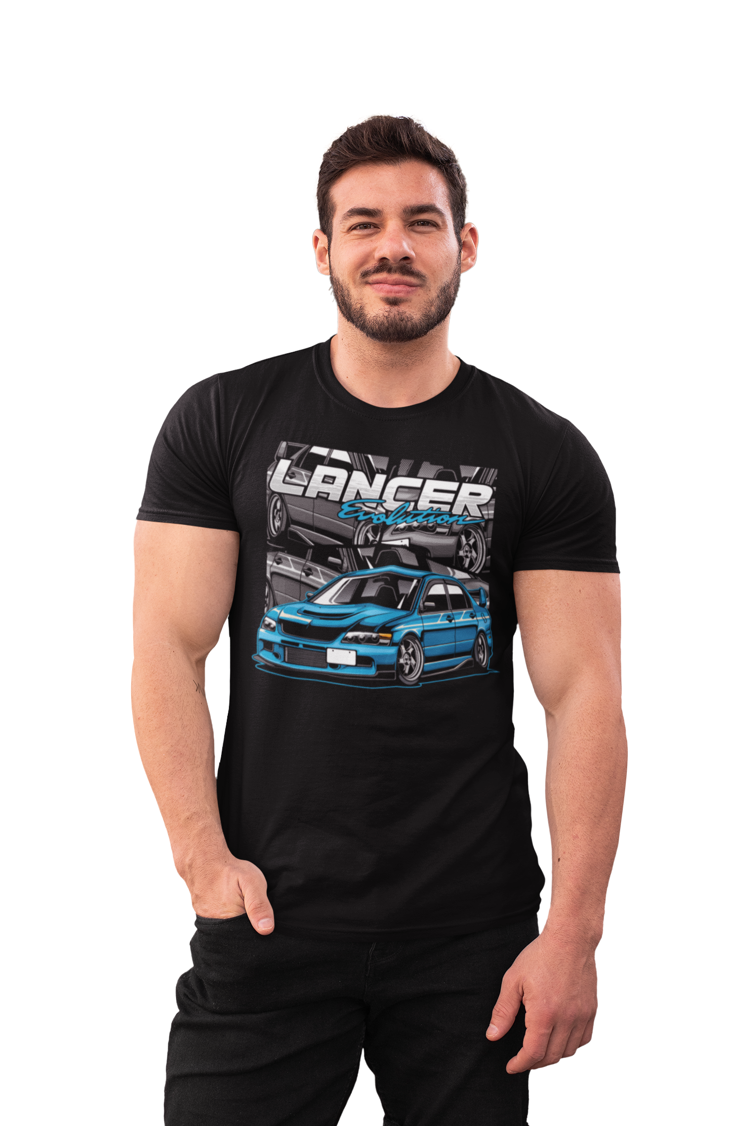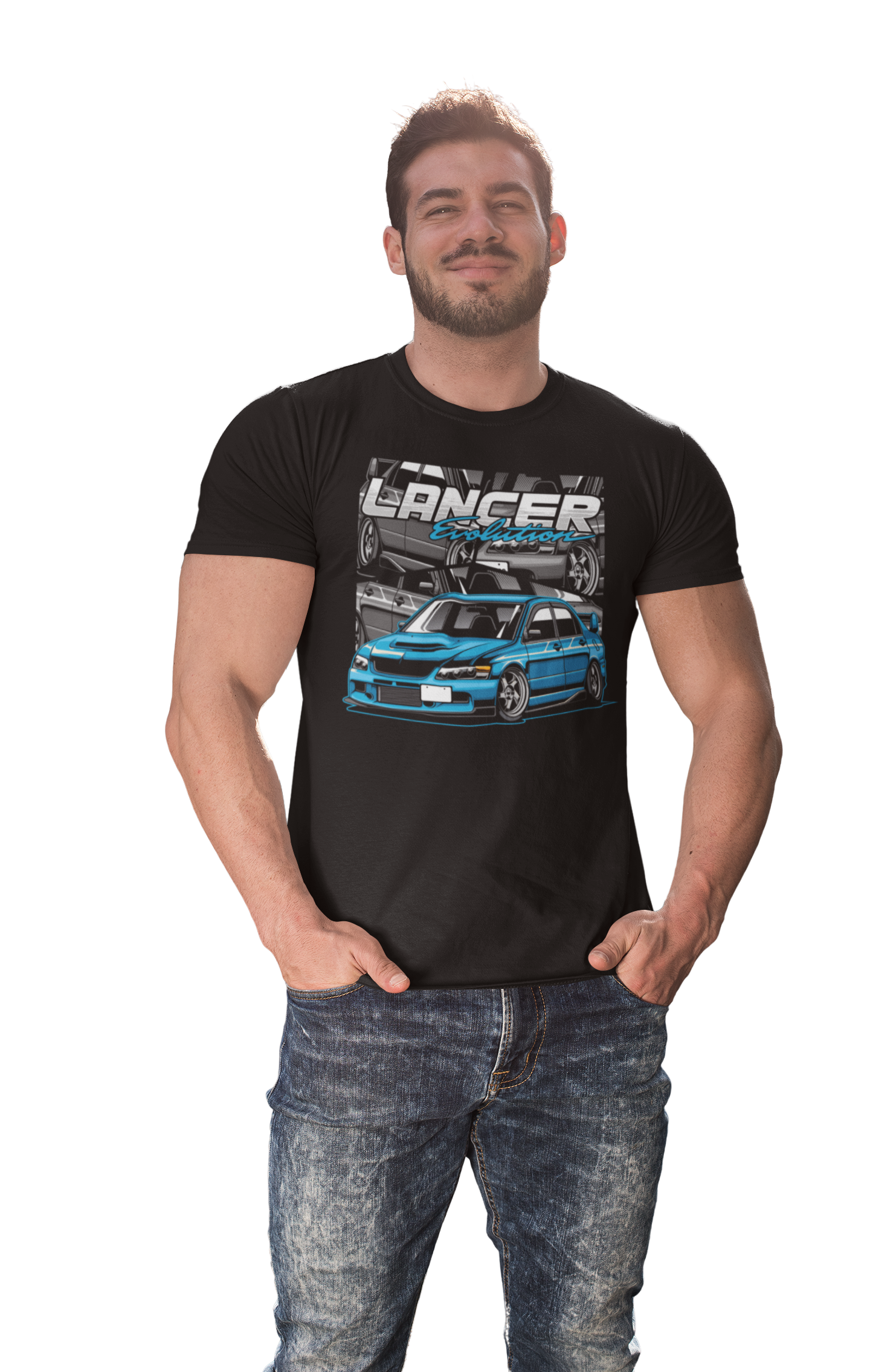 MĘSKA KOSZULKA MOTORYZACYJNA NIEBIESKIE MITSUBISHI LANCER EVOLUTION