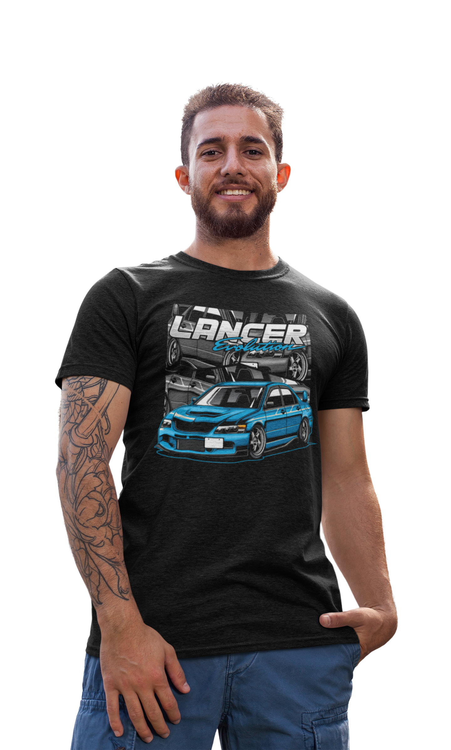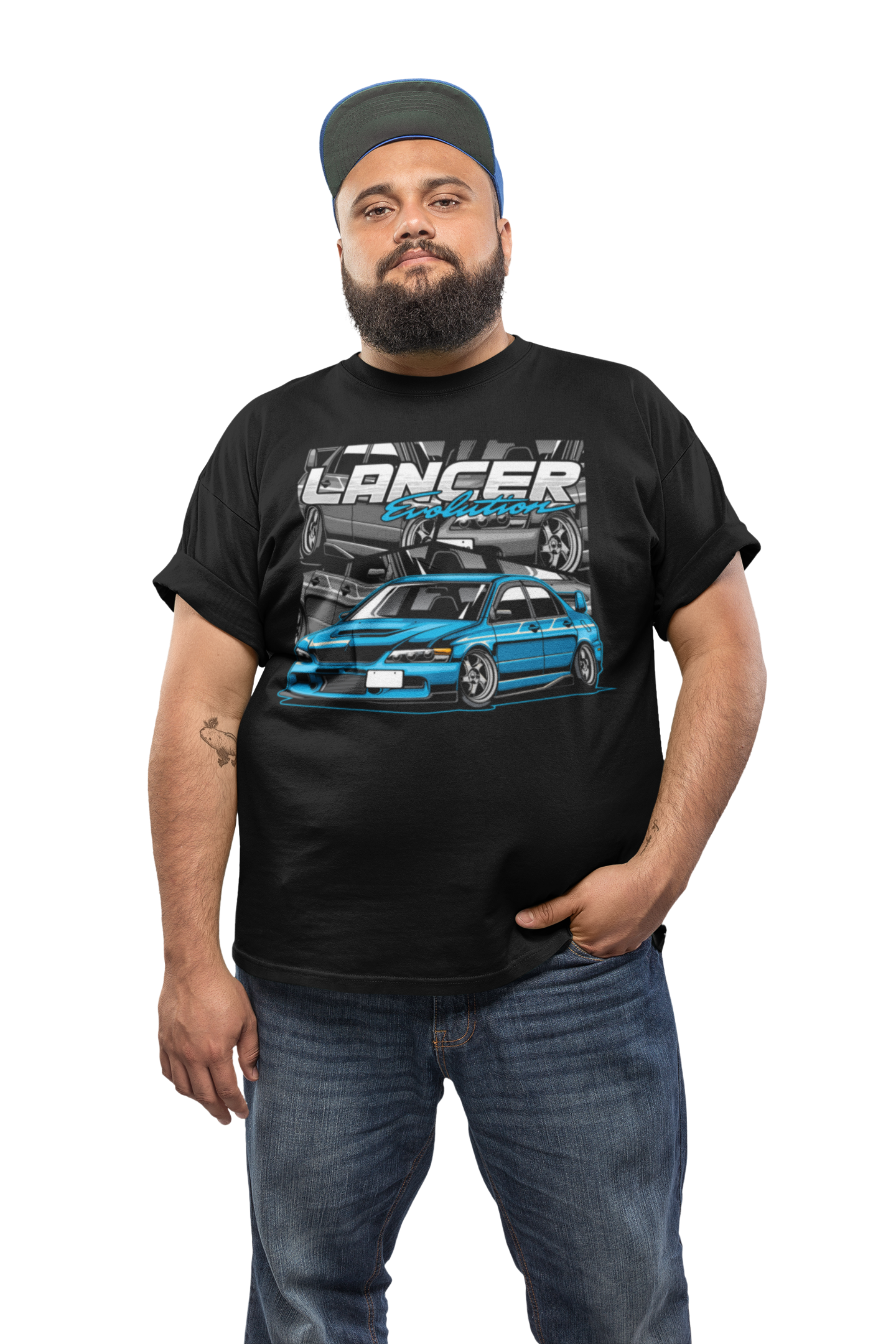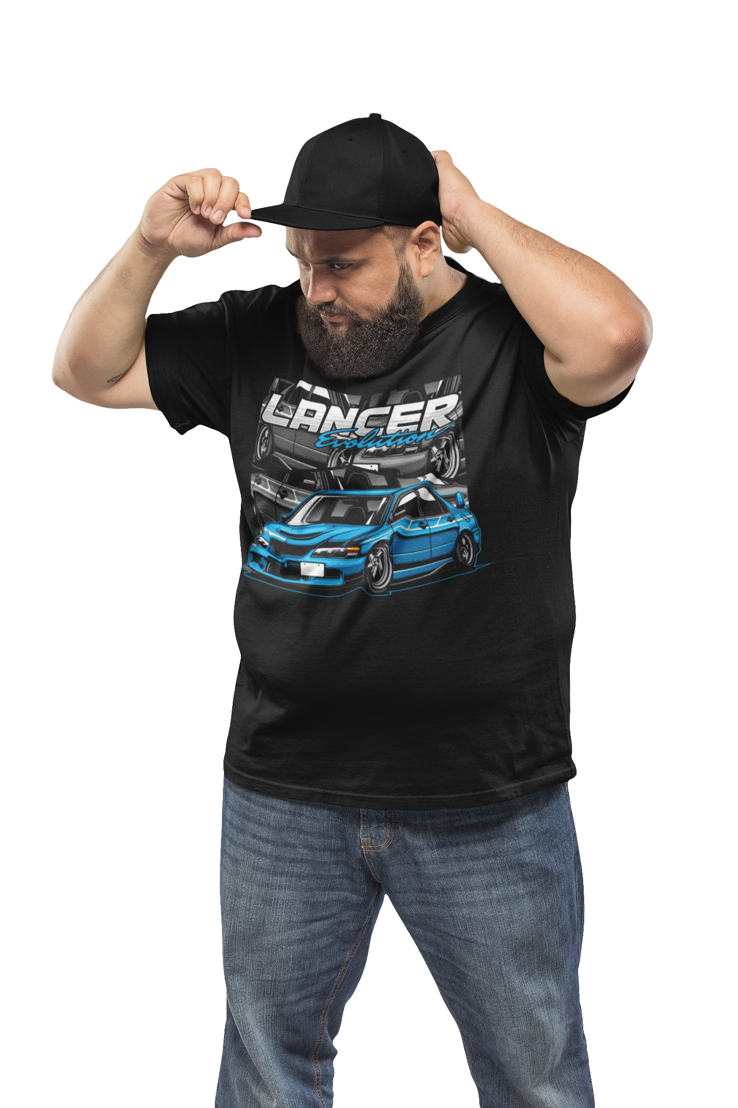 MĘSKA KOSZULKA MOTORYZACYJNA NIEBIESKIE MITSUBISHI LANCER EVOLUTION