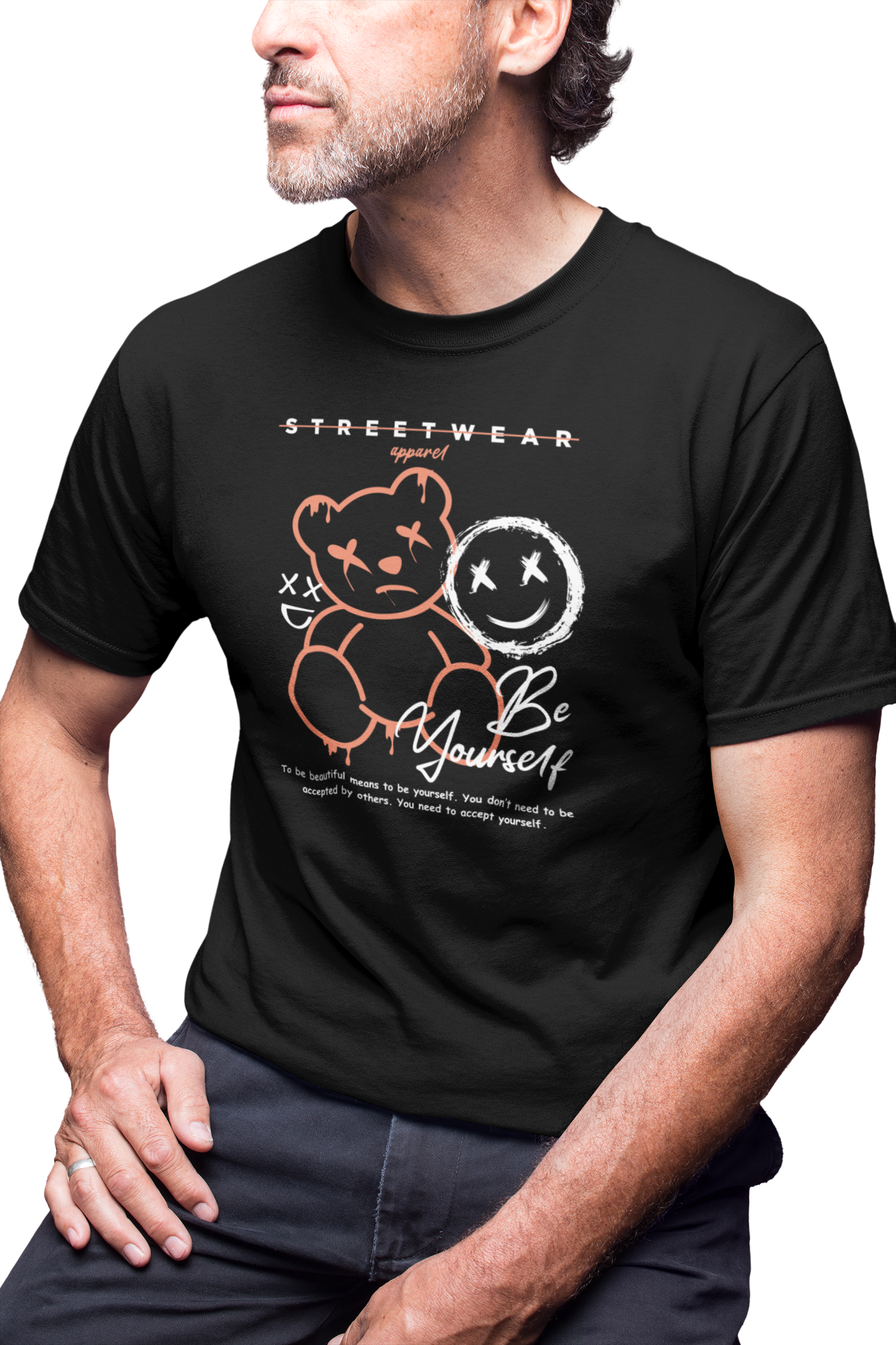 MĘSKA KOSZULKA MOTYWACYJNA PLUSZOWY MIŚ CASUAL BE YOURSELF