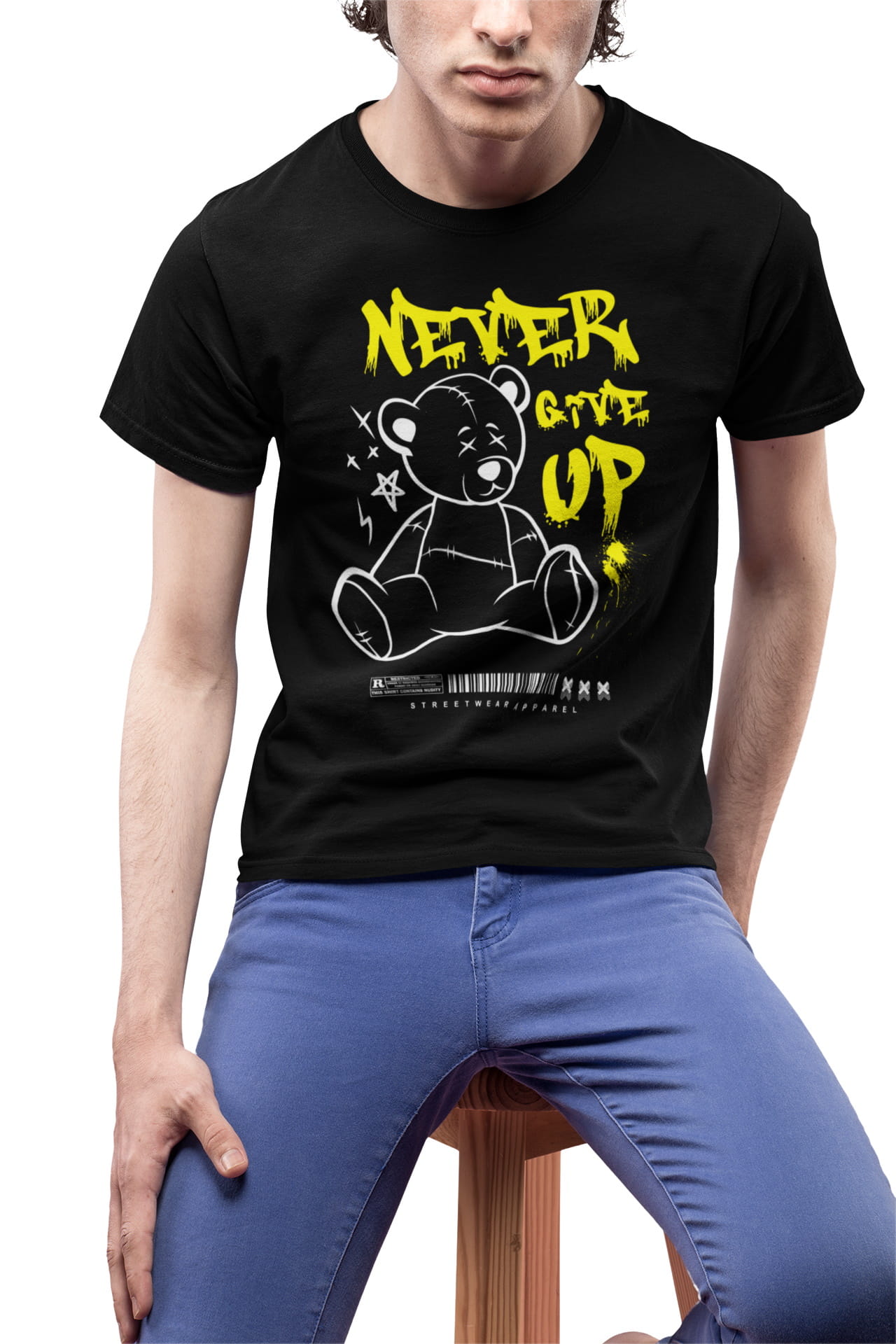 MĘSKA KOSZULKA MOTYWACYJNA PLUSZOWY MIŚ CASUAL NIGDY SIĘ NIE PODDAWAJ NEVER GIVE UP THINK POSITIVE