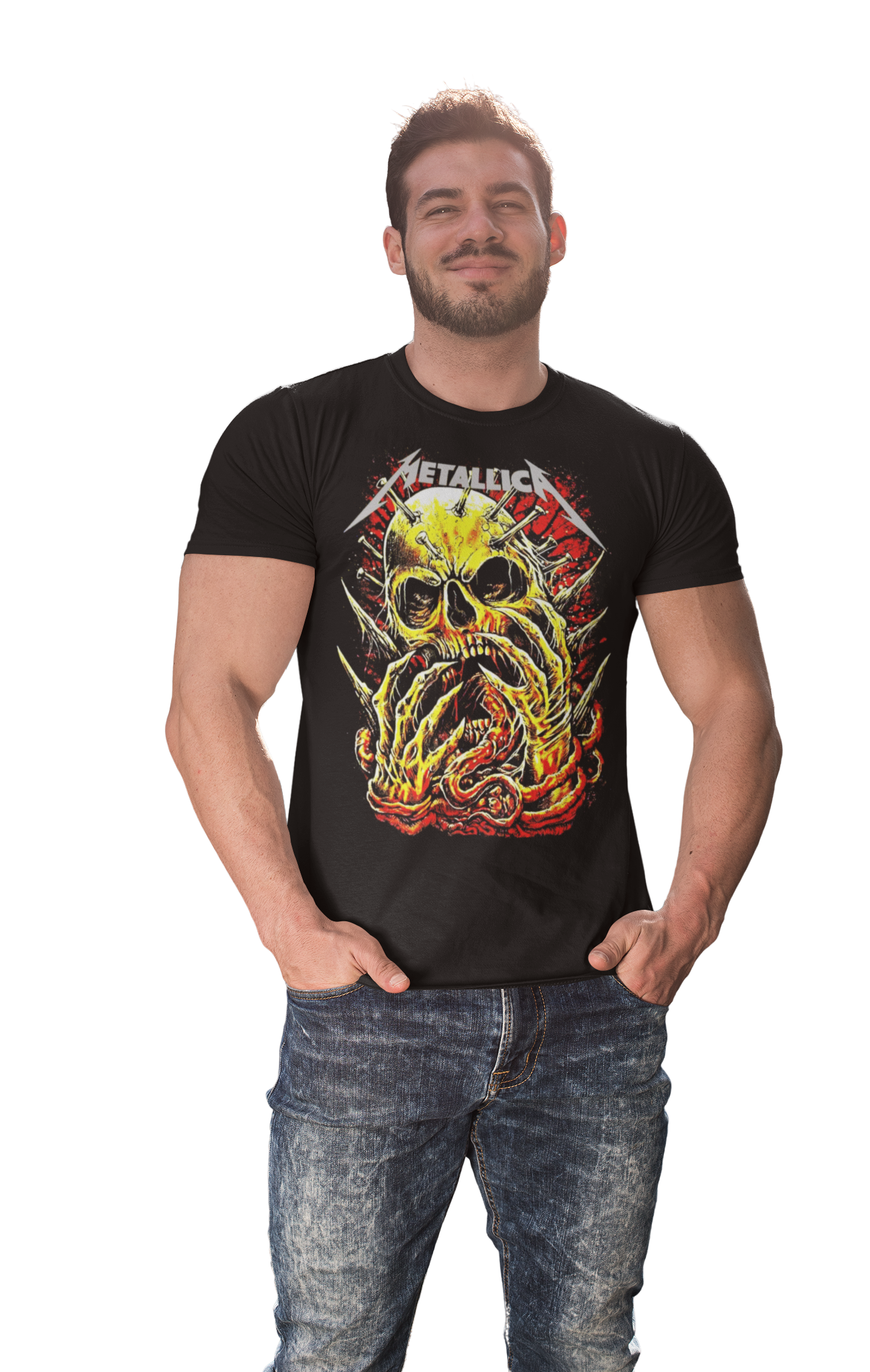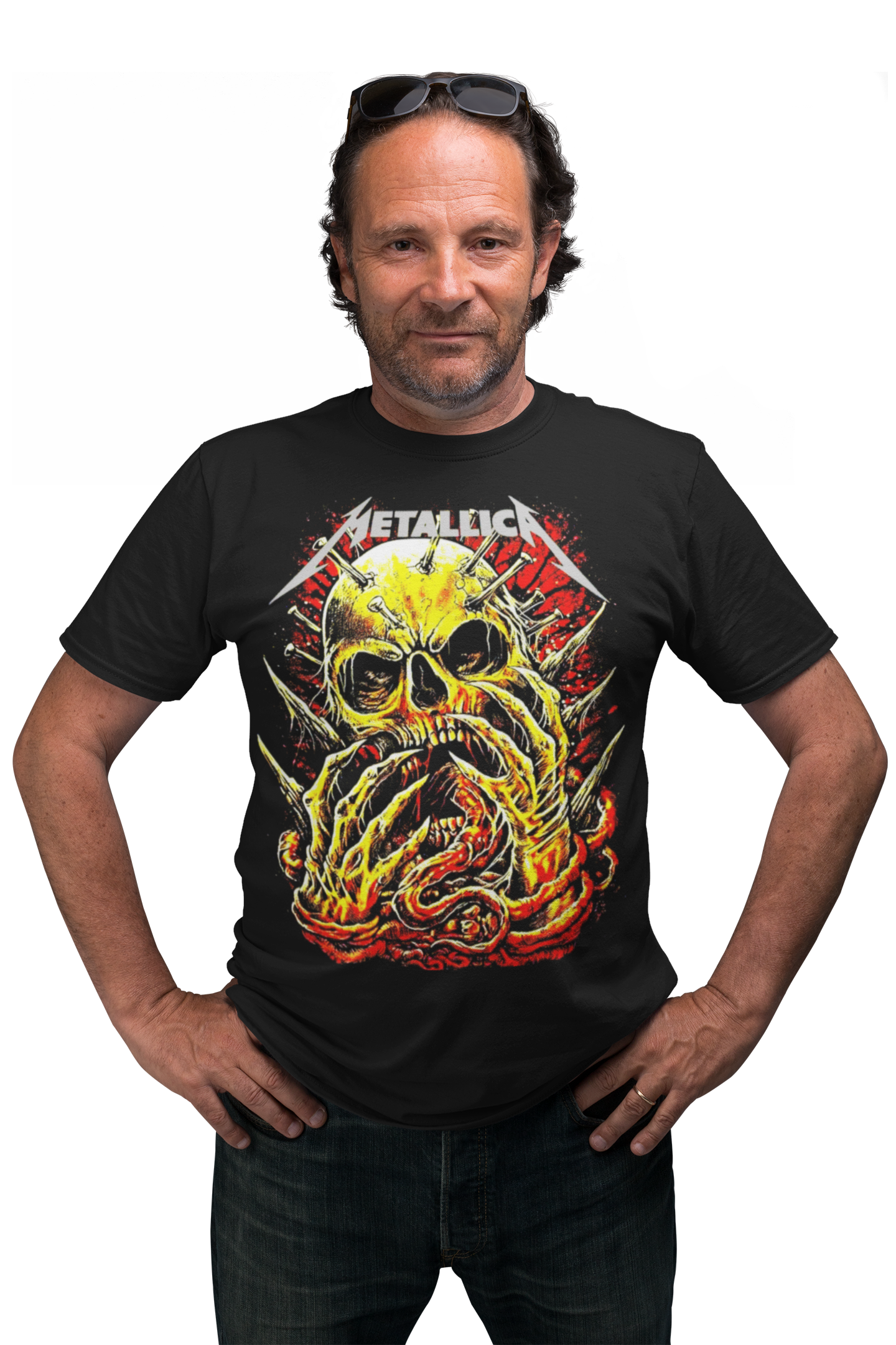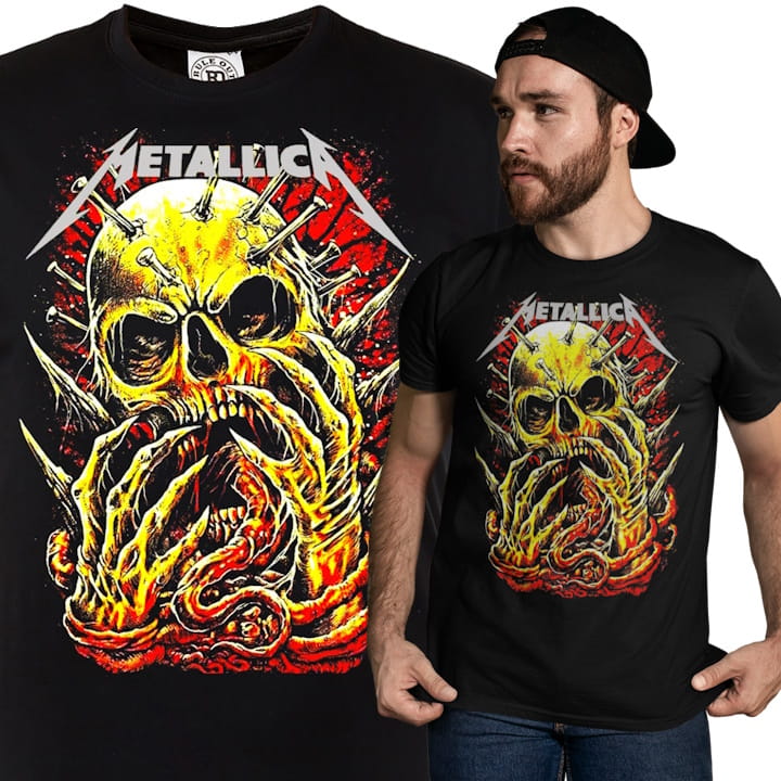 Unikatowa koszulka bawełniana z oryginalnym nadrukiem Metallica. Genialny pomysł na prezent dla fana zespołu, jako koszulka na koncert lub po prostu jako t-shirt na co dzień, podkreślający upodobania i styl.