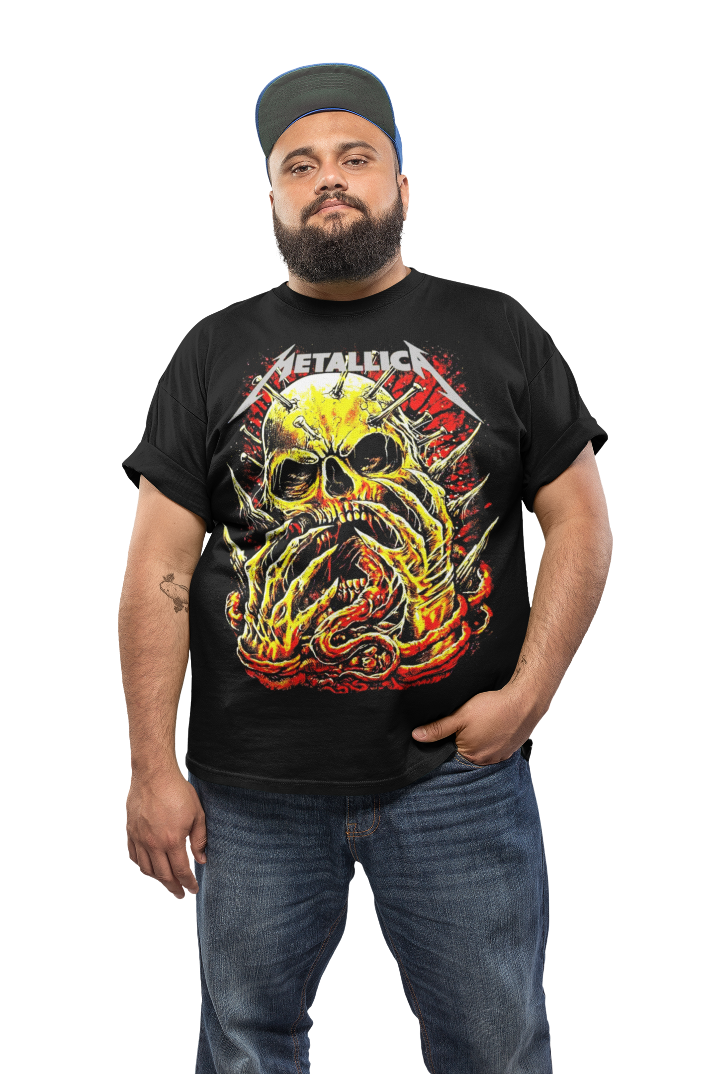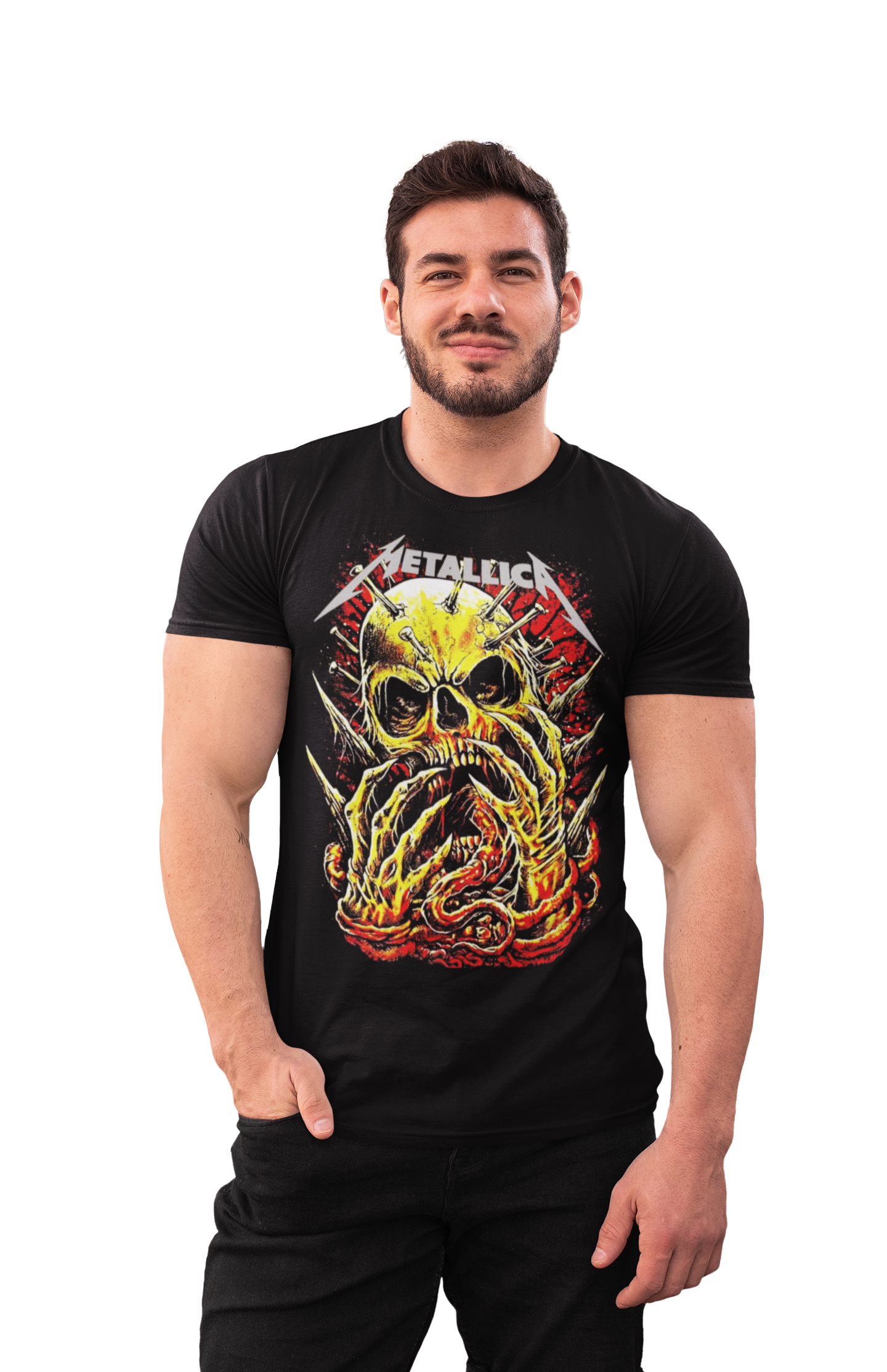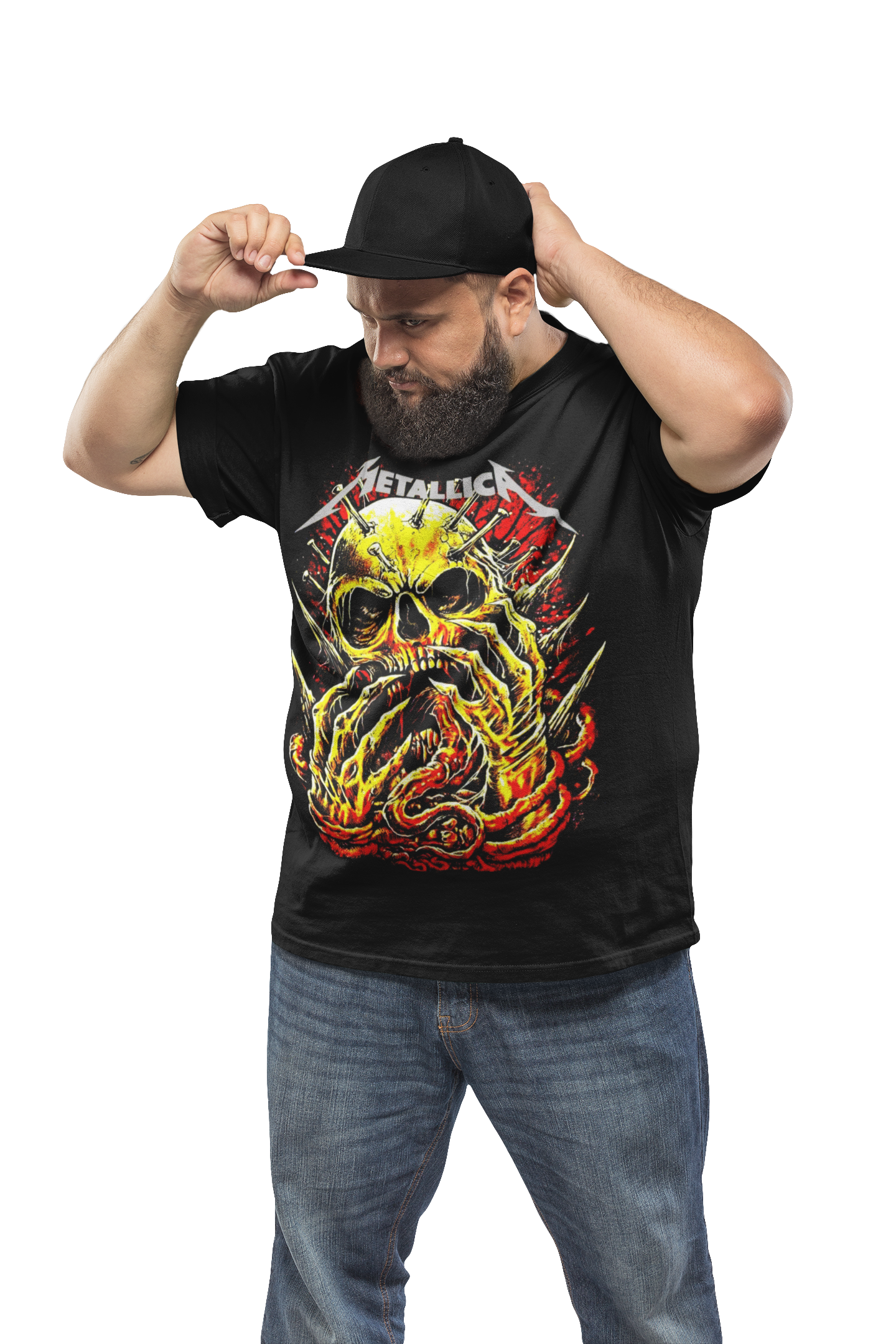 Unikatowa koszulka bawełniana z oryginalnym nadrukiem Metallica. Genialny pomysł na prezent dla fana zespołu, jako koszulka na koncert lub po prostu jako t-shirt na co dzień, podkreślający upodobania i styl.