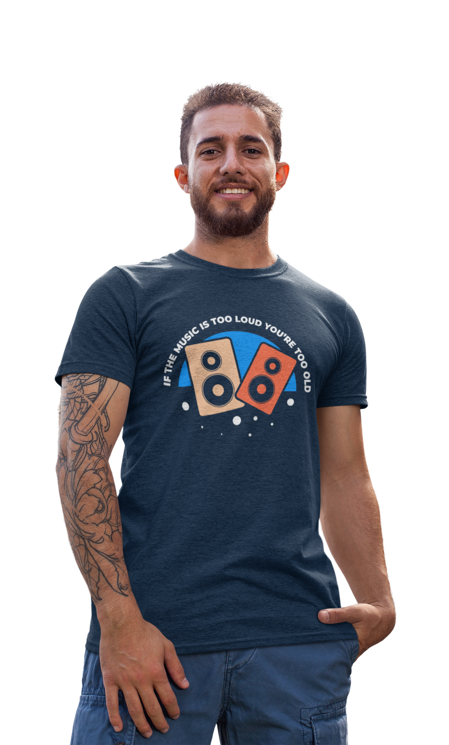 MĘSKA KOSZULKA MUZYCZNA MUZYKA GŁOŚNIKI GŁOŚNA MUZYKA IF THE MUSIC IS TOO LOUD YOU'RE TOO OLD