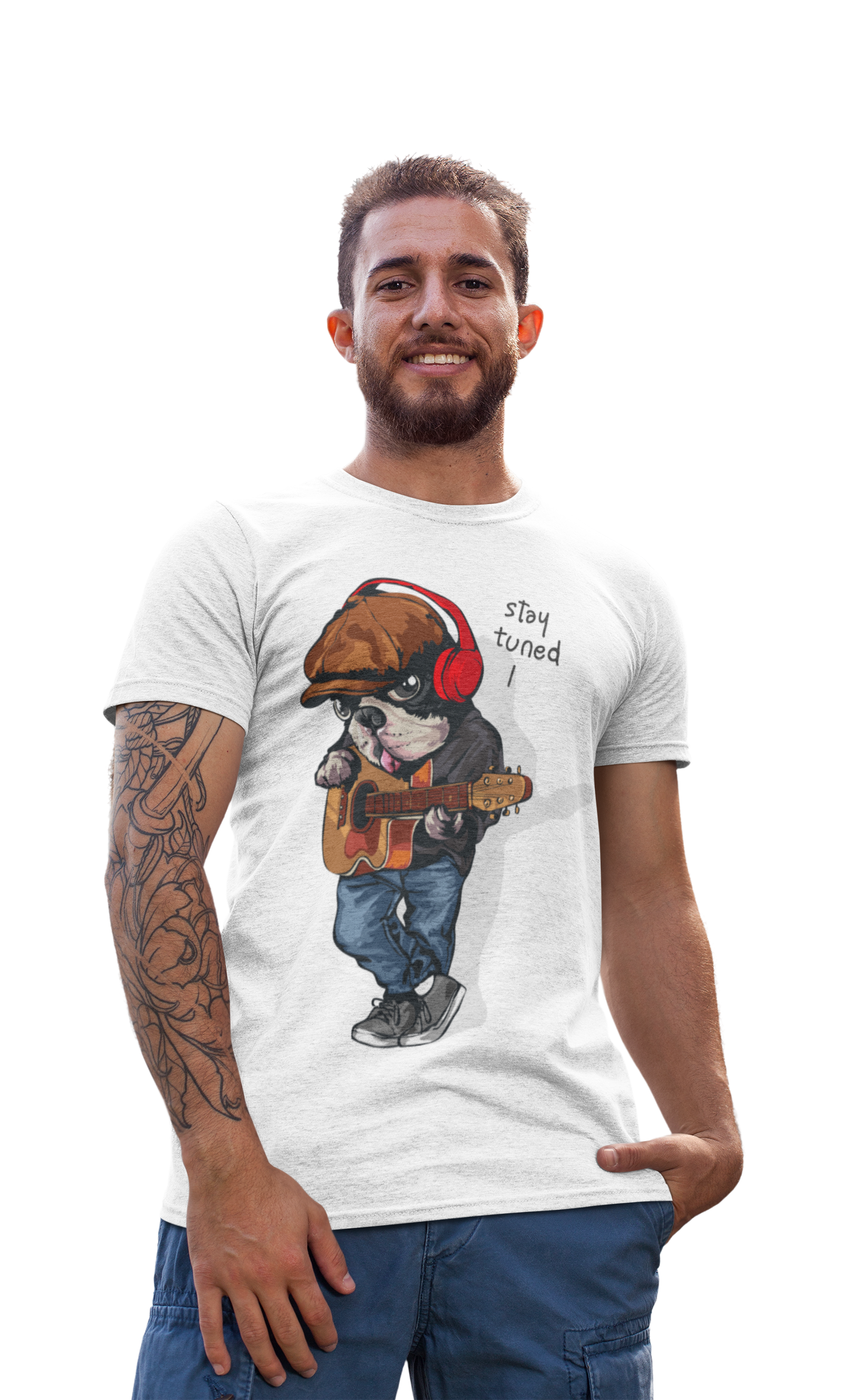 MĘSKA KOSZULKA MUZYCZNA MUZYKA PIES BULDOG FRANCUSKI Z GITARĄ MELOMAN