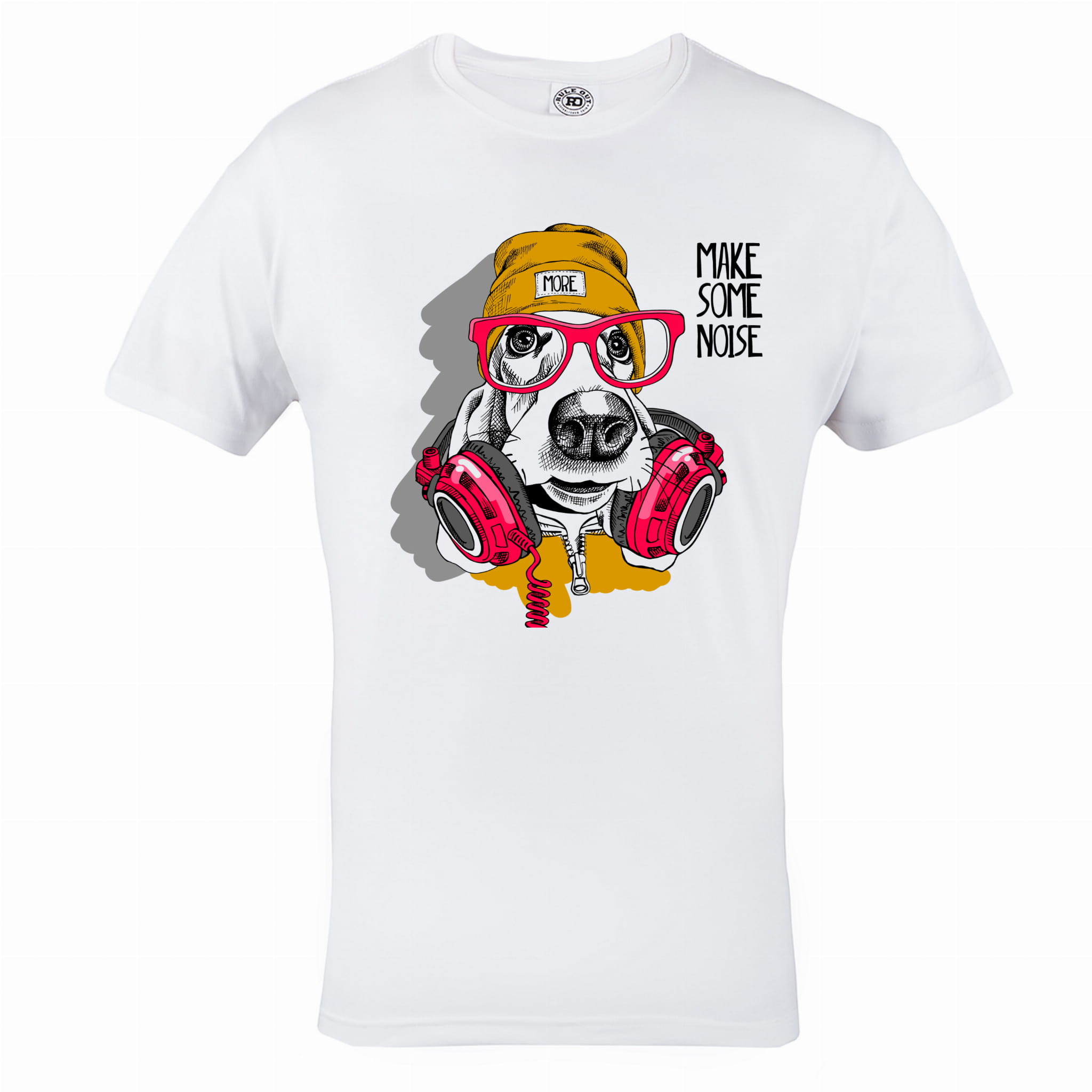 MĘSKA KOSZULKA MUZYCZNA MUZYKA SŁUCHAWKI PIES MAKE SOME NOISE