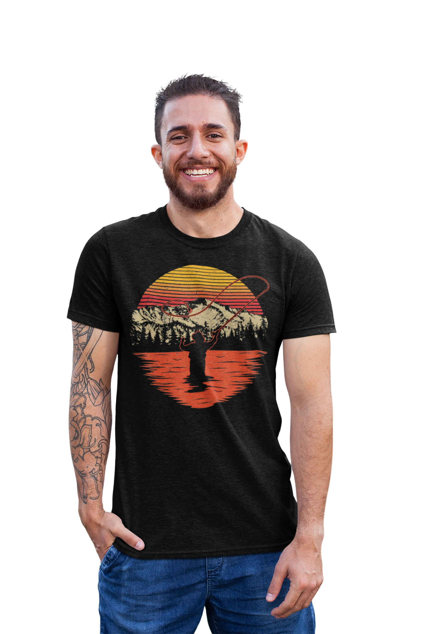 MĘSKA KOSZULKA NA RYBY WĘDKARSKA DLA WĘDKARZA ZACHÓD SŁOŃCA