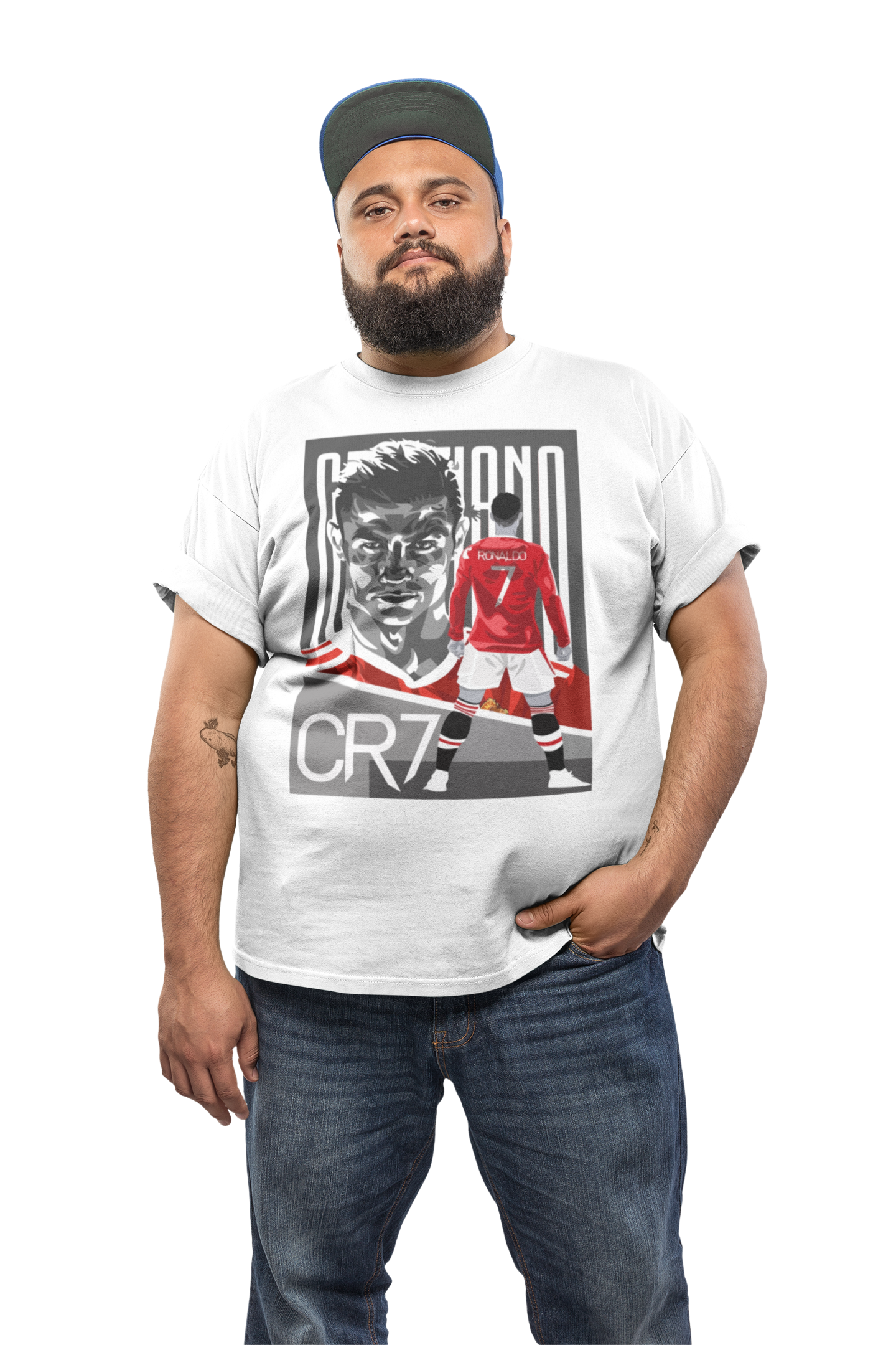 Wyjątkowa koszulka męska z wizerunkiem Cristiano Ronaldo to obowiązkowy element garderoby każdego fana jednego z najlepszych piłkarzy w historii futbolu! Wykonana z wysokiej jakości materiałów, gwarantuje maksymalny komfort i trwałość. Dynamiczny nadruk doskonale oddaje niepowtarzalny styl gry CR7 – jego szybkość, technikę i nieustępliwość na boisku.